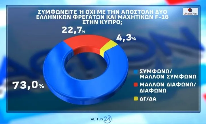 - Το 73% συμφωνεί με την αποστολή ελληνικών φρεγατών και F-16 στην Κύπρο.