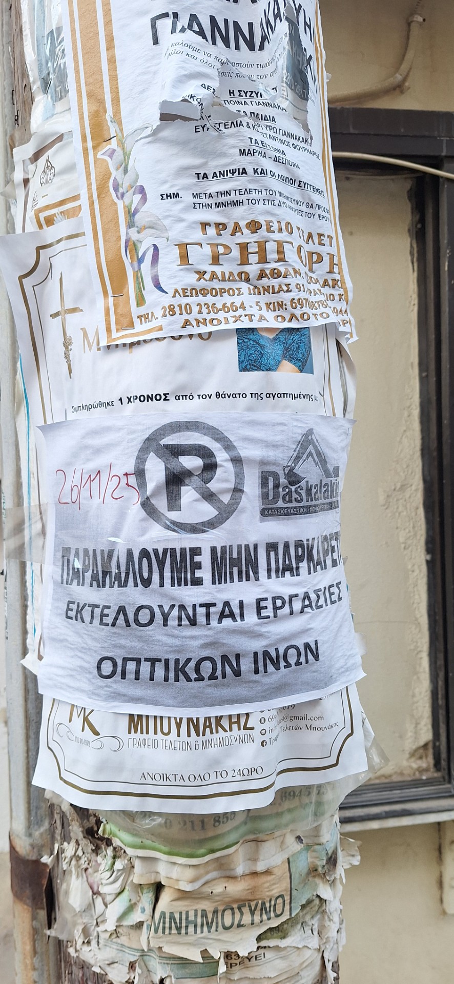 Ο εργολάβος που έχει αναλάβει την τοποθέτηση έχει ανοίξει αυλάκια στις οδούς Αντωνίου Καστρινάκη, Μαγγανάρηδων, Ραυτοπούλου και Διός από τις 26/11/2025, ενώ σήμερα είναι 10/12/2025.