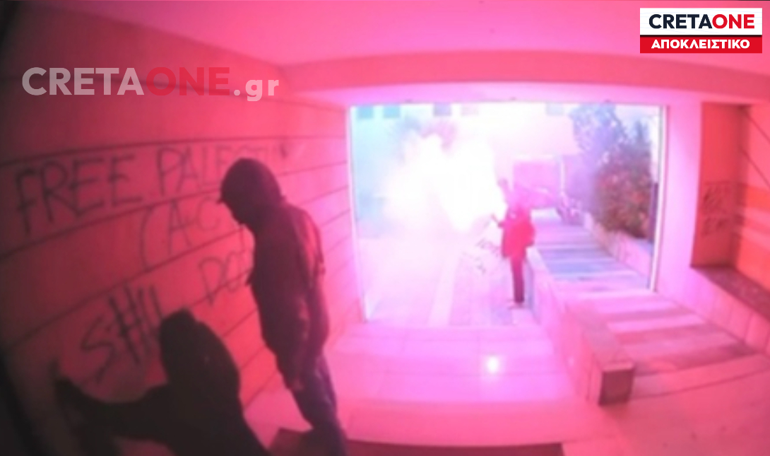Έφοδος κουκουλοφόρων σε είσοδο πολυκατοικίας στο Ηράκλειο – Καρέ-καρέ η εισβολή