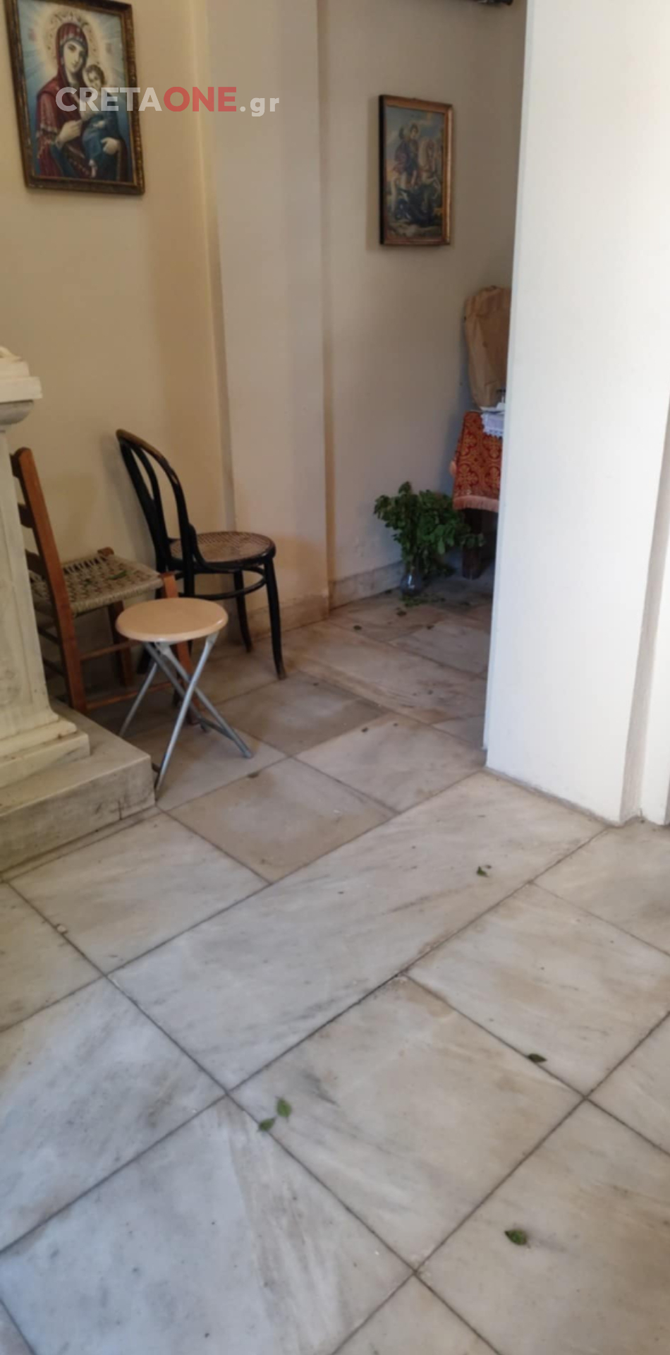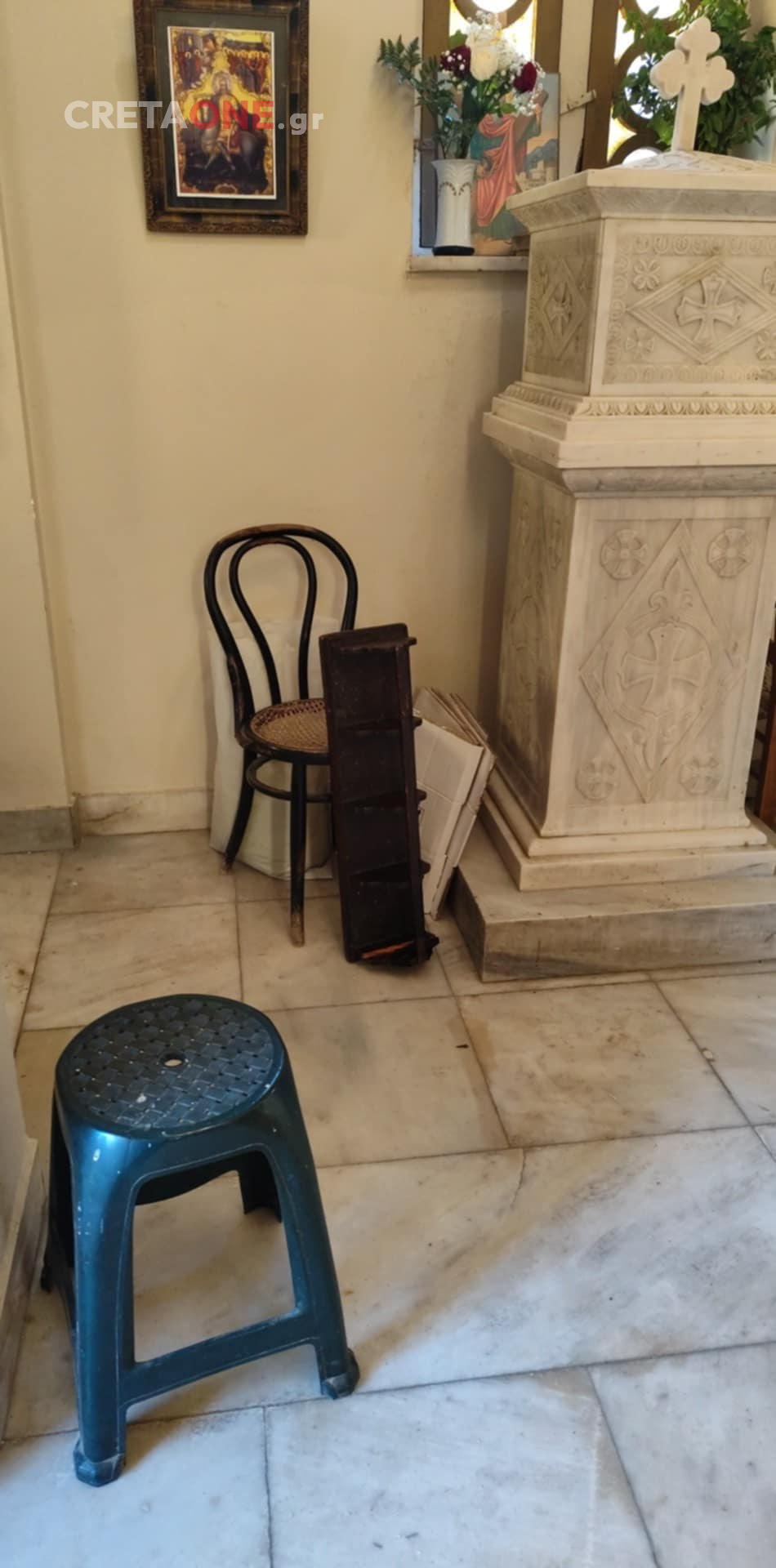 Φθορές στο κτίσμα και εμφανής ακαταστασία στο εσωτερικού του ναού όπως αποκαλύπτονται και στις φωτογραφίες.