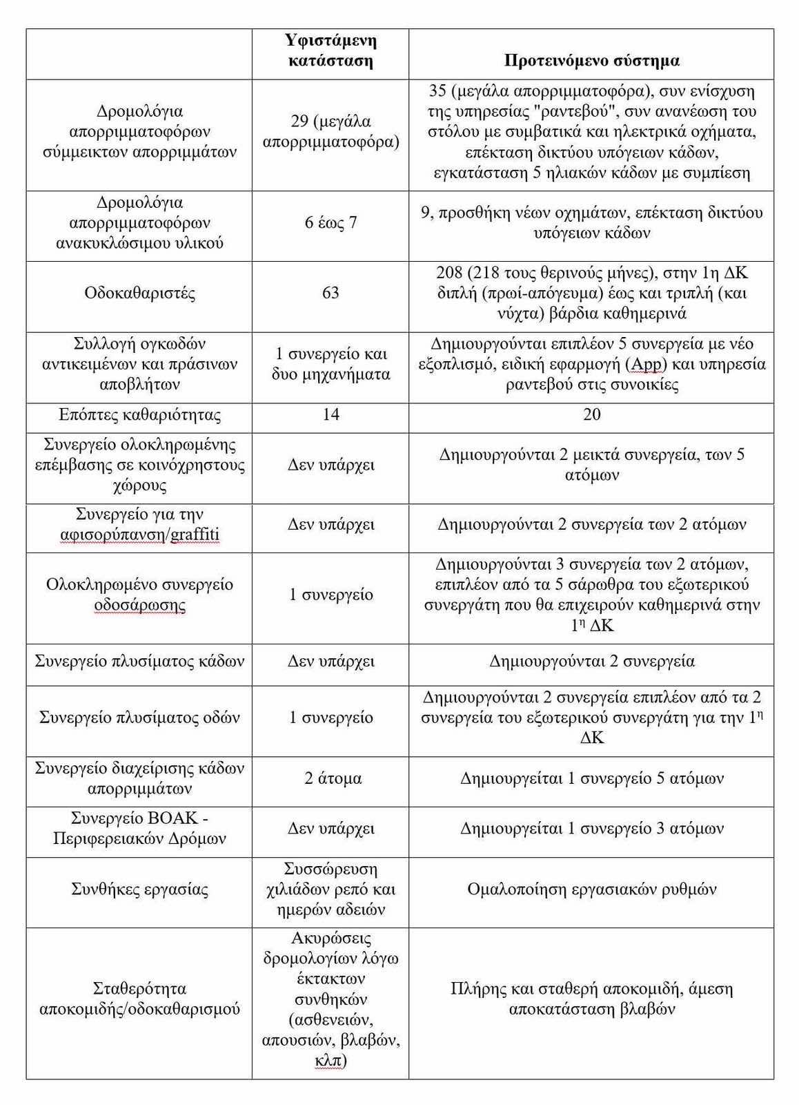 Η αναδιάταξη αυτή αναθέτει στο επιχειρησιακό εκτελεστικό σκέλος στην Υπηρεσία Καθαριότητας:
