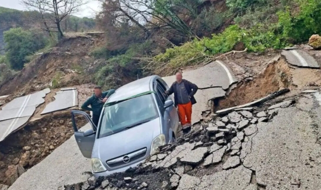 Η καθίζηση σημειώθηκε στις 11 το πρωί. Η κυκλοφορία διεκόπη και τα αυτοκίνητα ακολουθούν παράκαμψη για να φτάσουν στη Πράμαντα.