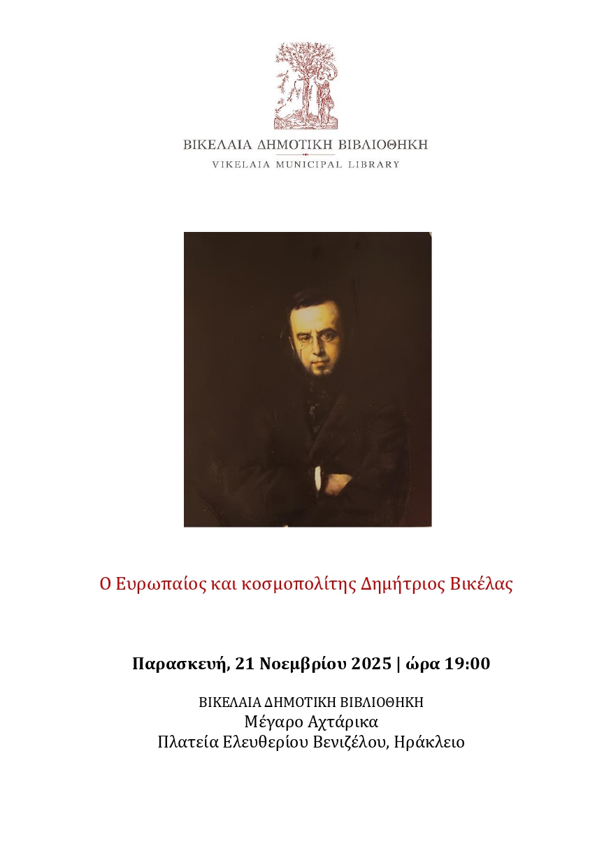 Εκδήλωση στη Βικελαία Δημοτική Βιβλιοθήκη: «Ο Ευρωπαίος και κοσμοπολίτης Δημήτριος Βικέλας»