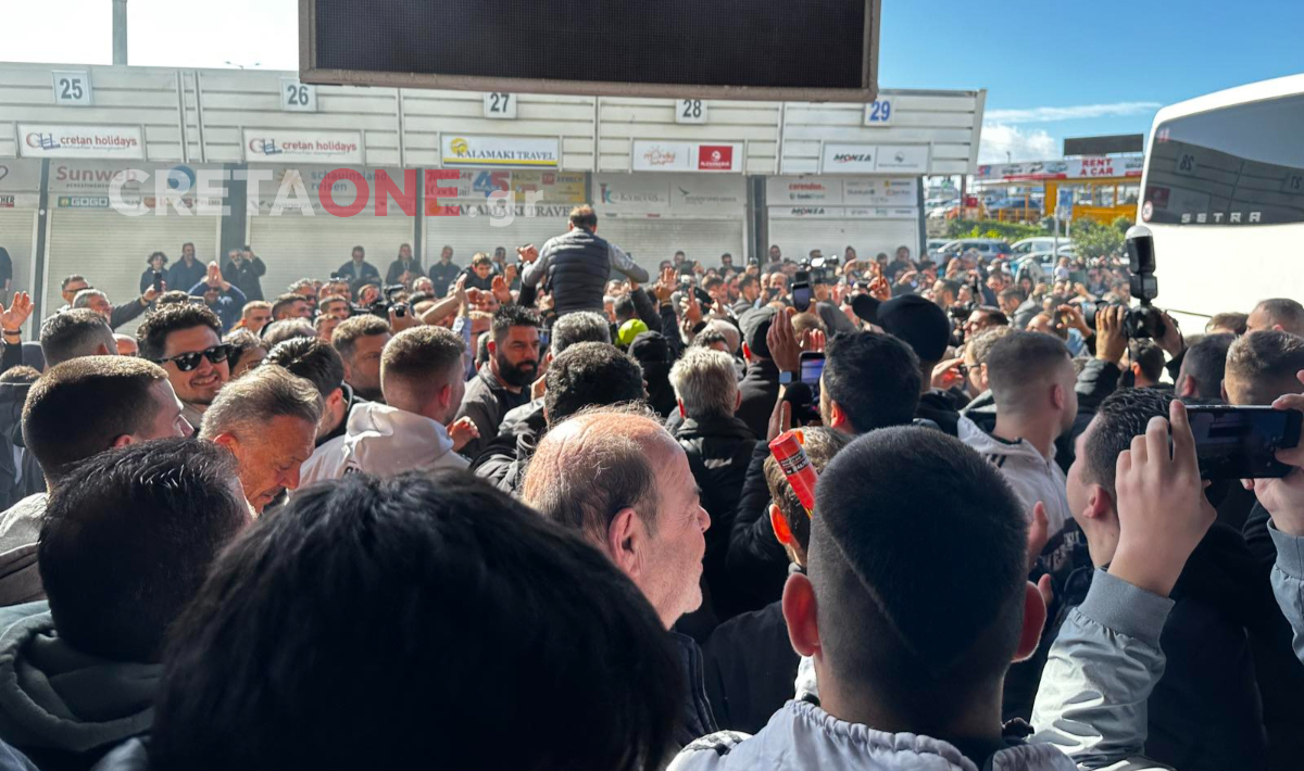 - Πλήθος φιλάθλων γιόρτασε την επιστροφή στο αεροδρόμιο «Νίκος Καζαντζάκης» με συνθήματα και καπνογόνα.