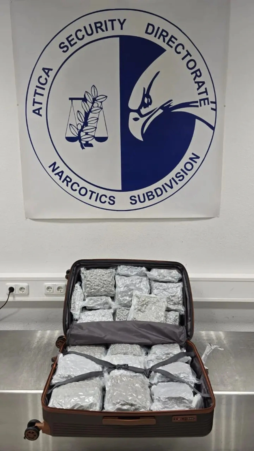 - Εντοπίστηκαν 36 συσκευασίες κάνναβης, συνολικού βάρους 18,8 κιλών, κρυμμένες σε βαλίτσα.
