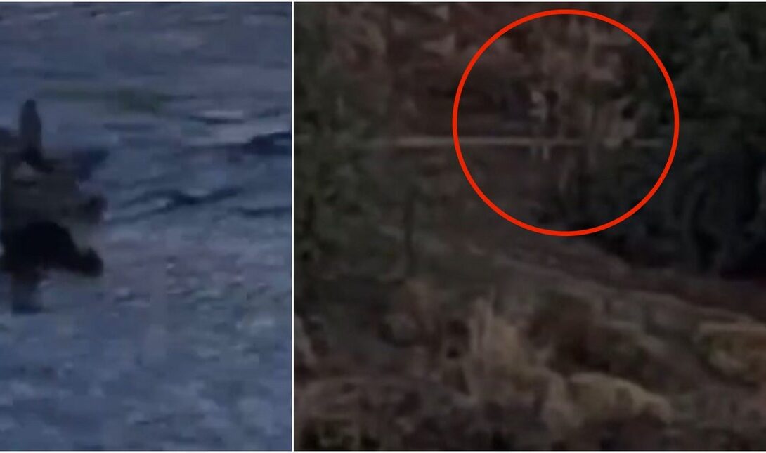Το ελάφι φάνηκε έντρομο μέσα στο νερό, ενώ πίσω του στη στεριά, διακρίνεται ένας λύκος.