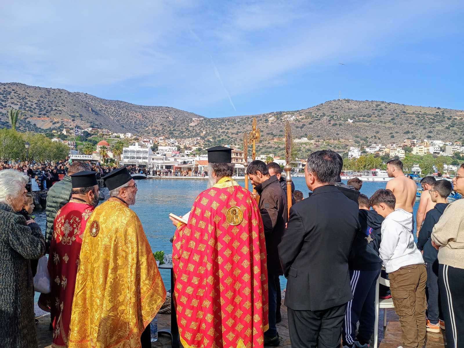 Ακολούθησε, παρουσία πλήθους πιστών, η καθιερωμένη τελετή της ρίψης του Τιμίου Σταυρού στο λιμάνι της Ελούντας.