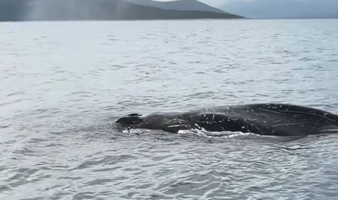 • Βίντεο στο YouTube δείχνει τη φάλαινα να κολυμπάει κοντά στους ψαράδες και να πετάει νερό από τον φυσητήρα της.
