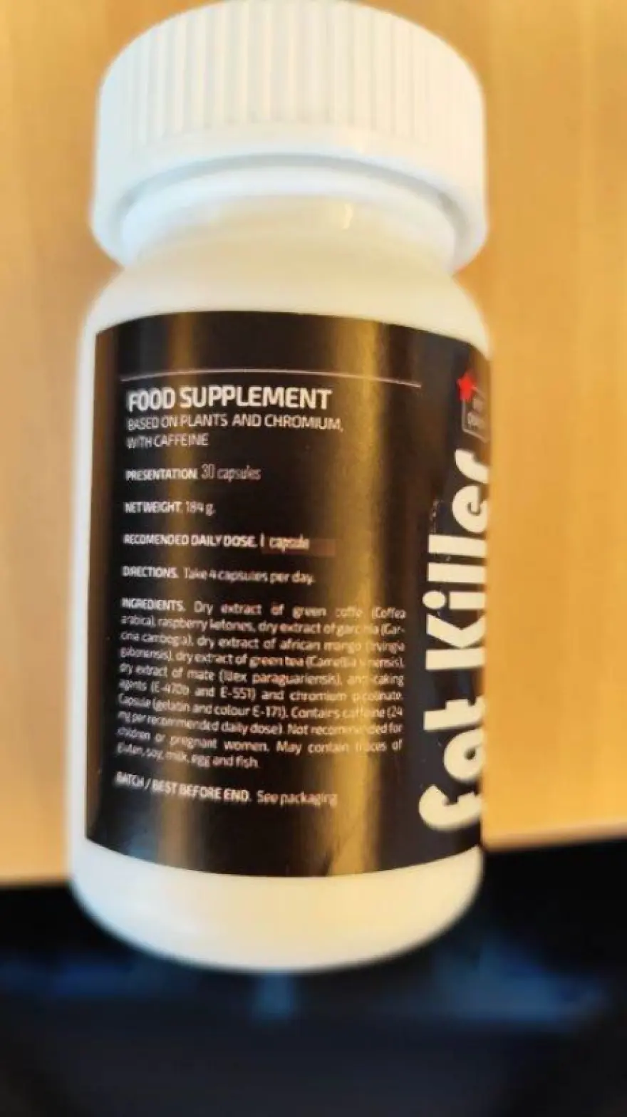 Ο ΕΟΦ, κατόπιν ενημέρωσης από τις αρχές της Γερμανίας, προειδοποιεί τους καταναλωτές να μην αγοράζουν ή κάνουν χρήση του προϊόντος FAT KILLER capsules. Το συγκεκριμένο σκεύασμα προωθείται ως συμπλήρωμα διατροφής και είναι πιθανόν να έχει διακινηθεί και στη χώρα μας μέσω ηλεκτρονικού εμπορίου.