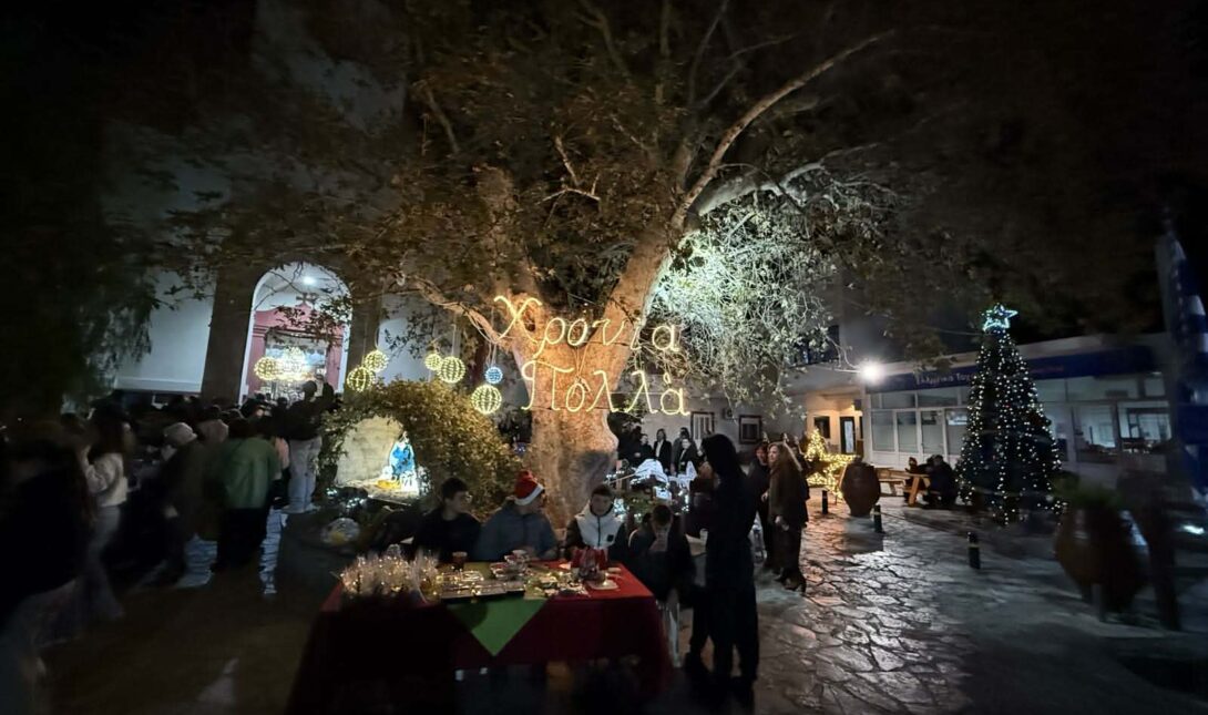 Μικροί και μεγάλοι που γέμισαν τη γραφική πλατεία είχαν την ευκαιρία να απολαύσουν κεράσματα με ζεστή σοκολάτα και διάφορα εδέσματα, να περιηγηθούν στο χριστουγεννιάτικο παζάρι, ενώ τα παιδιά διασκέδασαν με face painting και παρέλαβαν δωράκια.