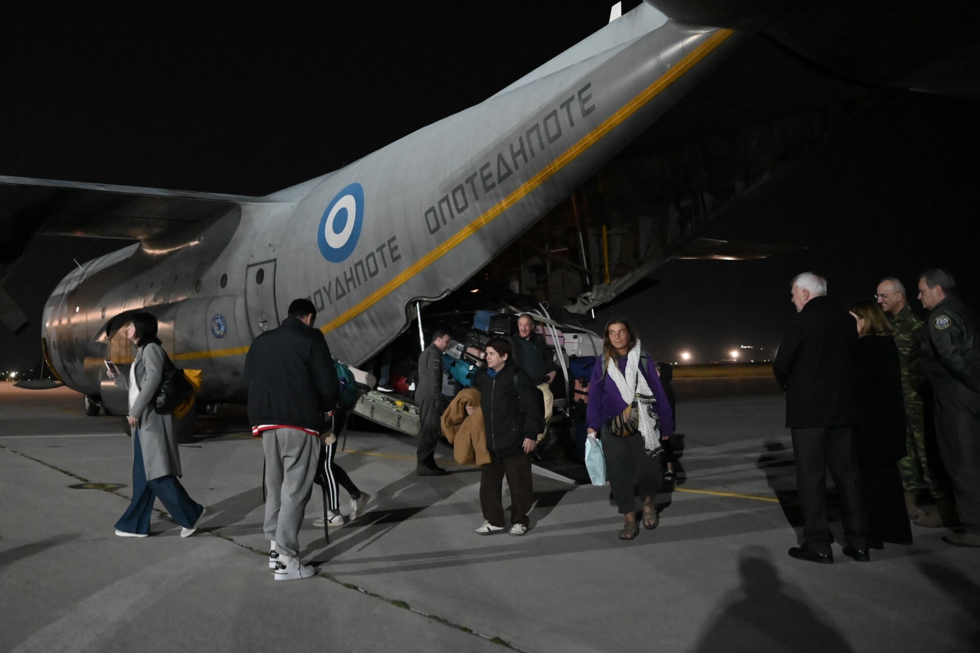 Έλληνες πολίτες και μέλη των οικογενειών τους που βρίσκονταν στο Κατάρ, το Κουβέιτ και το Μπαχρέιν, έφτασαν στην Αθήνα από το Dammam της Σαουδικής Αραβίας με αεροσκάφος C-130 της Πολεμικής Αεροπορίας, που προσγειώθηκε στην 112 ΠΜ το βράδυ του Σαββάτου 7/3/2026.