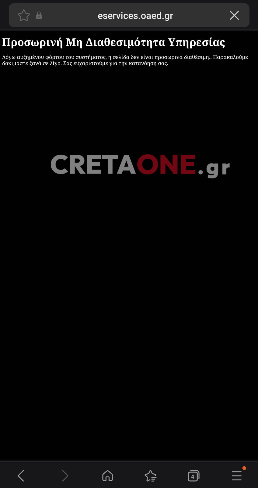 Η πρόσβαση παρουσιάζει δυσλειτουργίες και καθυστερήσεις, με αποτέλεσμα αρκετοί χρήστες να μην μπορούν να ολοκληρώσουν τη διαδικασία υποβολής της αίτησής τους, όπως φαίνεται και στην παρακάτω φωτογραφία.