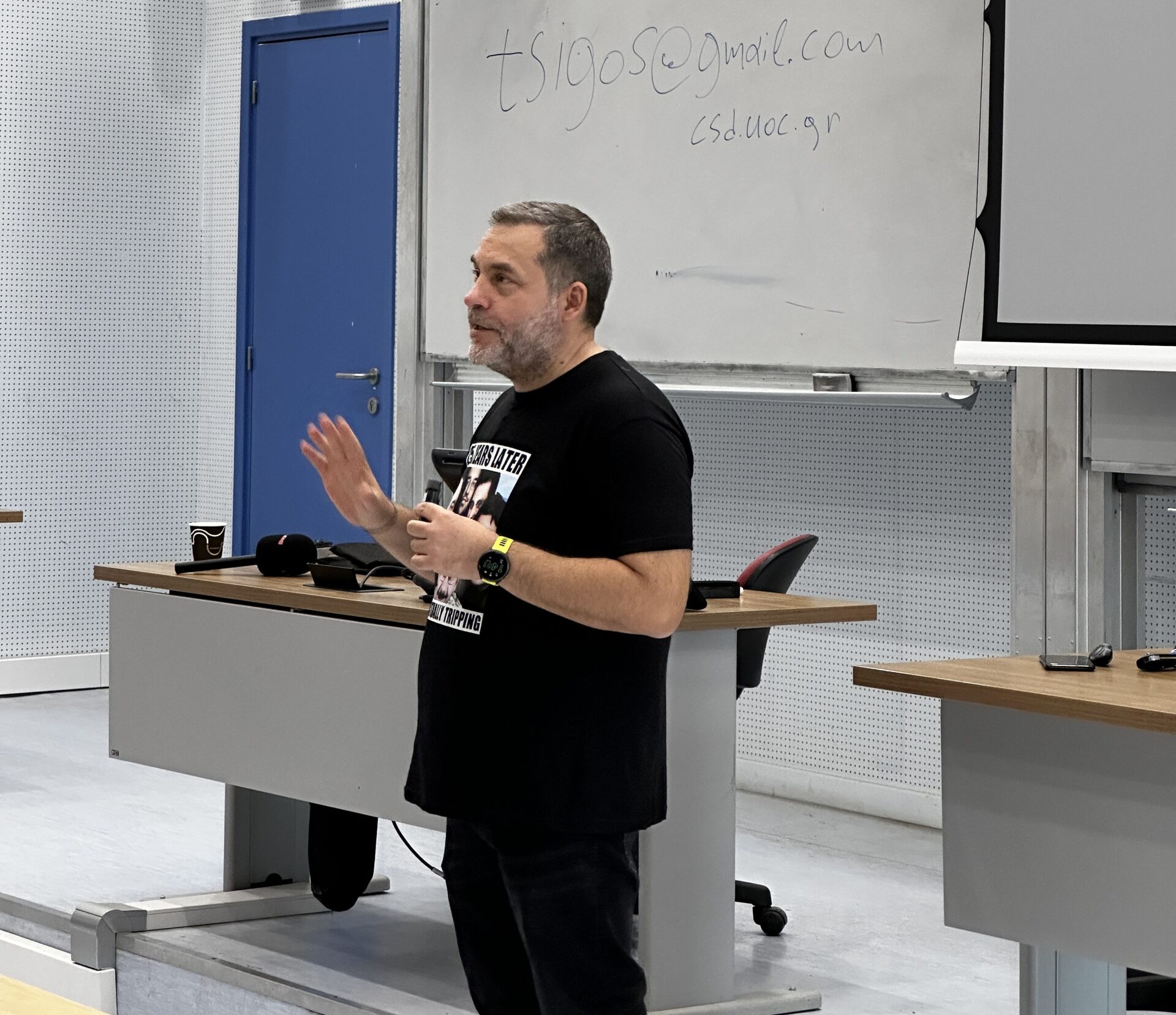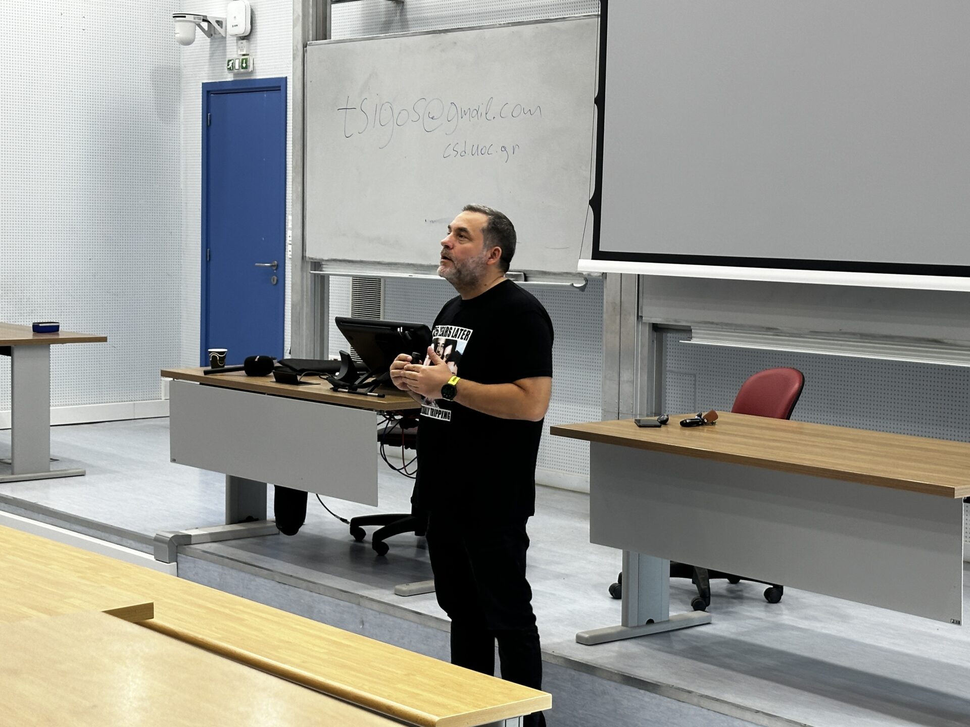 Κεντρικό σημείο της εκδήλωσης αποτέλεσε η ομιλία του Δημήτρη Τσίγκου, Συνιδρυτή & CEO της Epignosis, με τίτλο «Ανακτώντας την κεντρικότητα της Κρήτης στη Μεσόγειο: Ο ρόλος της τεχνολογικής επιχειρηματικότητας και του Πανεπιστημίου Κρήτης».