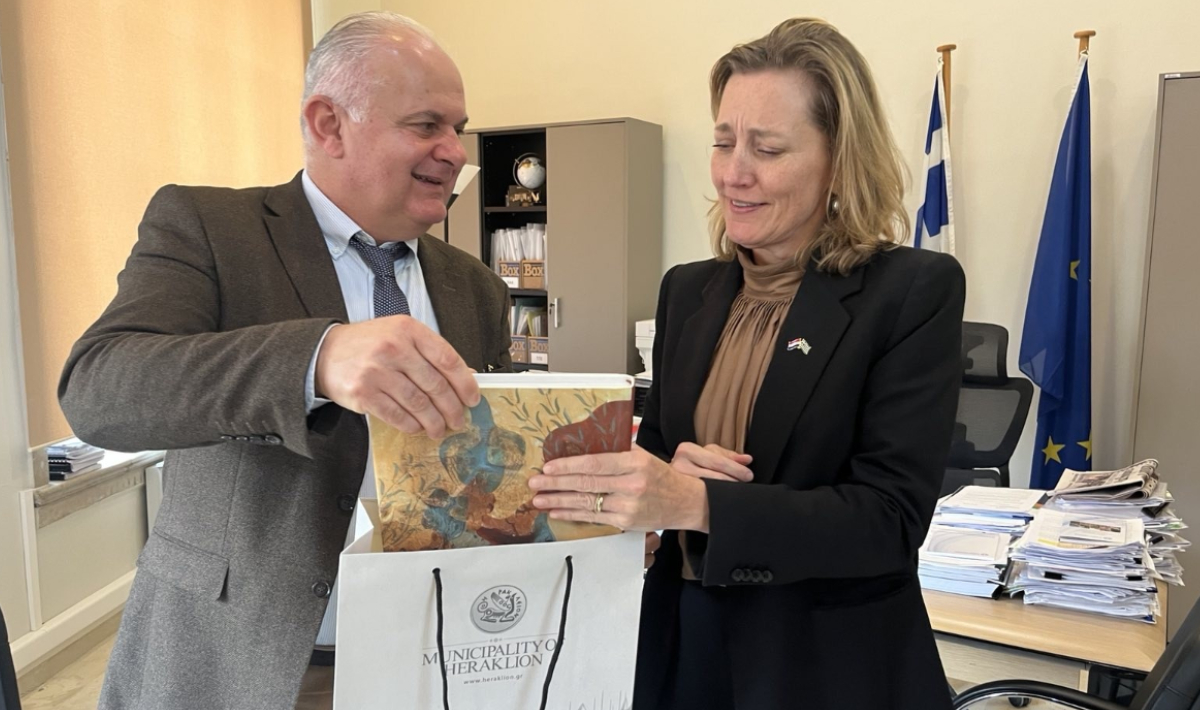 Το πρωί της Τρίτης 31/3, ο Αντιδήμαρχος Διοίκησης και Τουρισμού, καθώς και Αναπληρωτής Δήμαρχος, Γιώργος Αγριμανάκης, υποδέχθηκε την Πρέσβη του Βασιλείου της Ολλανδίας στην Ελλάδα, Barbara van Hellemond, την Πρόξενο της Ολλανδίας στο Ηράκλειο, Αγγέλα Ανθουλάκη, καθώς και την Υπεύθυνη Οικονομικής Πολιτικής της Πρεσβείας, Ράννια Σαββάκη.