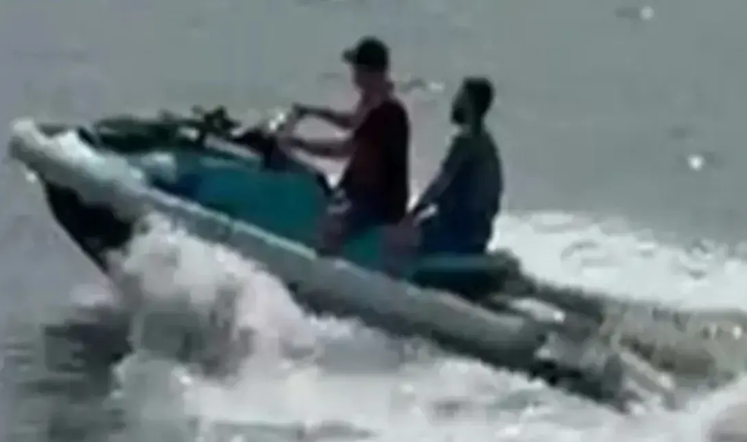 Όπως δείχνουν πλάνα από κάμερες ασφαλείας, ένας περαστικός με τζετ σκι τον βοήθησε να βγει στην ακτή.