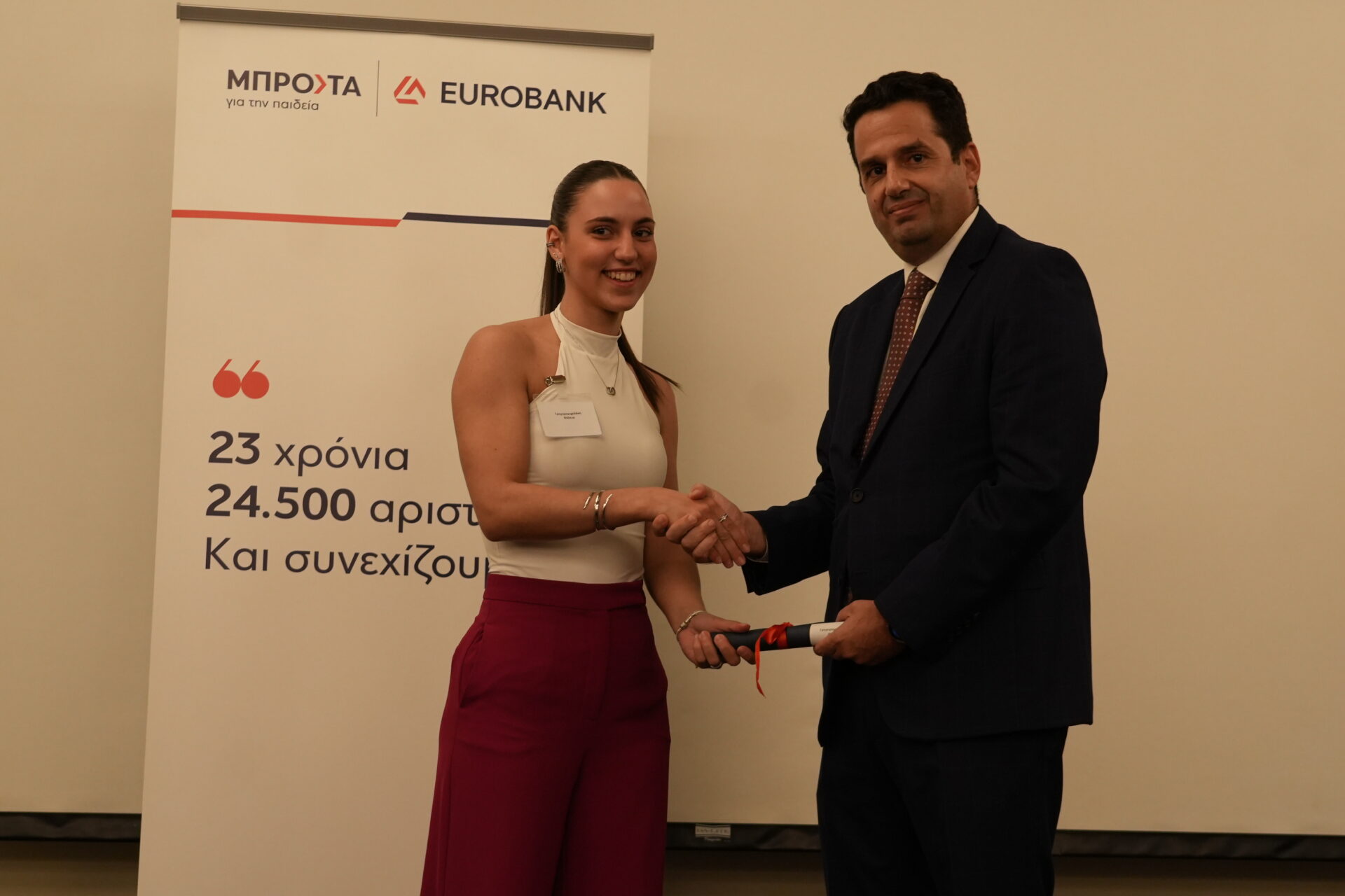 Η Eurobank, σταθερός υποστηρικτής της νέας γενιάς, επιβεβαιώνει κάθε χρόνο τη δέσμευσή της στην εκπαίδευση και στην αριστεία. Από το 2003, η Τράπεζα έχει βραβεύσει 24.494 αριστούχους μαθητές από όλη τη χώρα, επενδύοντας περισσότερα από 21 εκατομμύρια ευρώ στην ενίσχυση των πρώτων βημάτων τους στην ακαδημαϊκή και επαγγελματική πορεία.