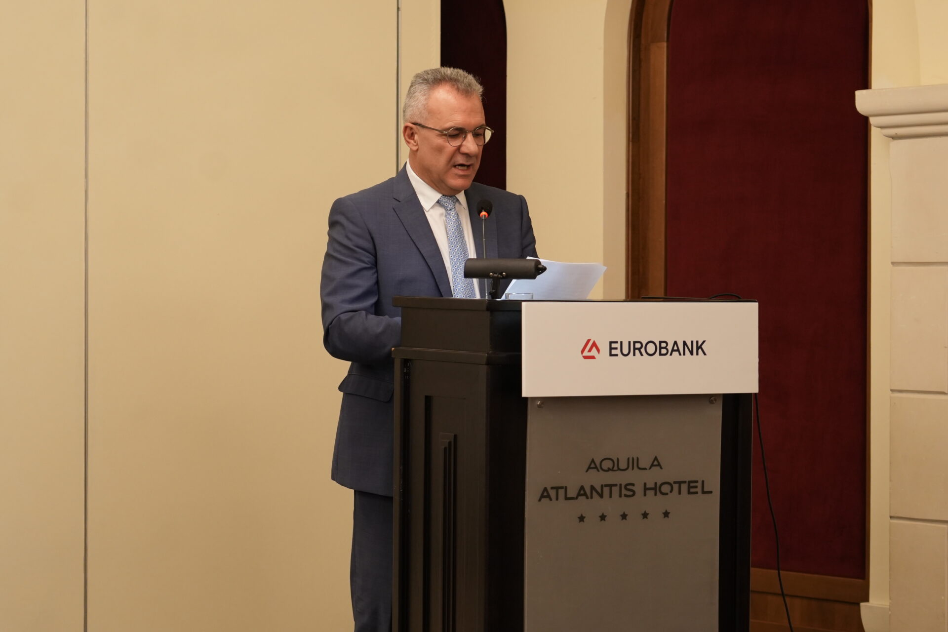 Με λόγια συγκίνησης και υπερηφάνειας, ο Τομεάρχης Καταστημάτων Κρήτης και Νησιών της Eurobank, κ. Νίκος Φραγκιαδάκης, αναφέρθηκε στη σημασία του θεσμού και στη διαχρονική παρουσία της Τράπεζας δίπλα στους νέους.
