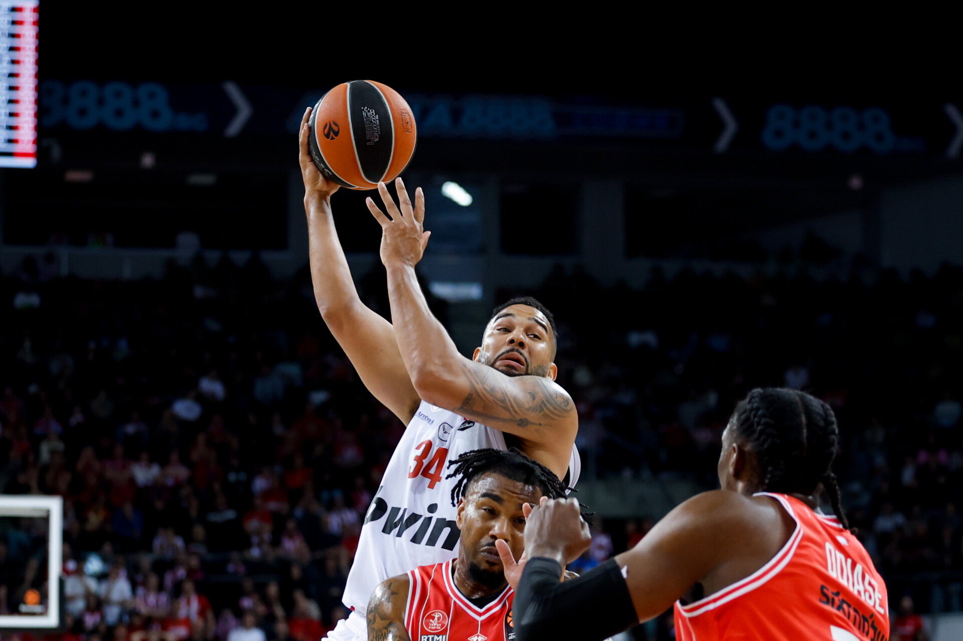 Το βράδυ της Μεγάλης Πέμπτης (09/04) οι «ερυθρόλευκοι» λύγισαν την ομάδα του Δημήτρη Ιτούδη με σκορ 89-85 στην κατάμεστη από φίλους της ελληνικής ομάδας «8888 Arena» για την 37η αγωνιστική της διοργάνωσης, σε μια βραδιά με κεντρικά πρόσωπα τους Σάσα Βεζένκοφ και Μουσταφά Φαλ!