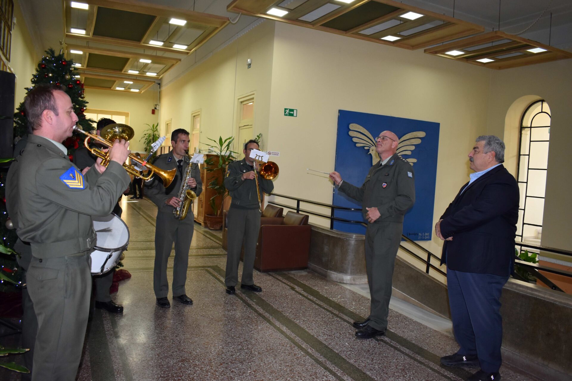 Την Περιφερειακή Ενότητα Χανίων επισκέφτηκαν σήμερα Τετάρτη 31/12 το πρωί, το Μουσικό Τμήμα του Πεδίου Βολής Κρήτης και η ΣΜΣ / 44 ΣΔΙ, οι οποίοι έπαιξαν τα πρωτοχρονιάτικα κάλαντα, μεταφέροντας τις ευχές των αντίστοιχων Διοικητών του ΠΒΚ και της 5ης Α/Μ ΤΑΞ στον Αντιπεριφερειάρχη Χανίων κ. Νίκο Καλογερή.