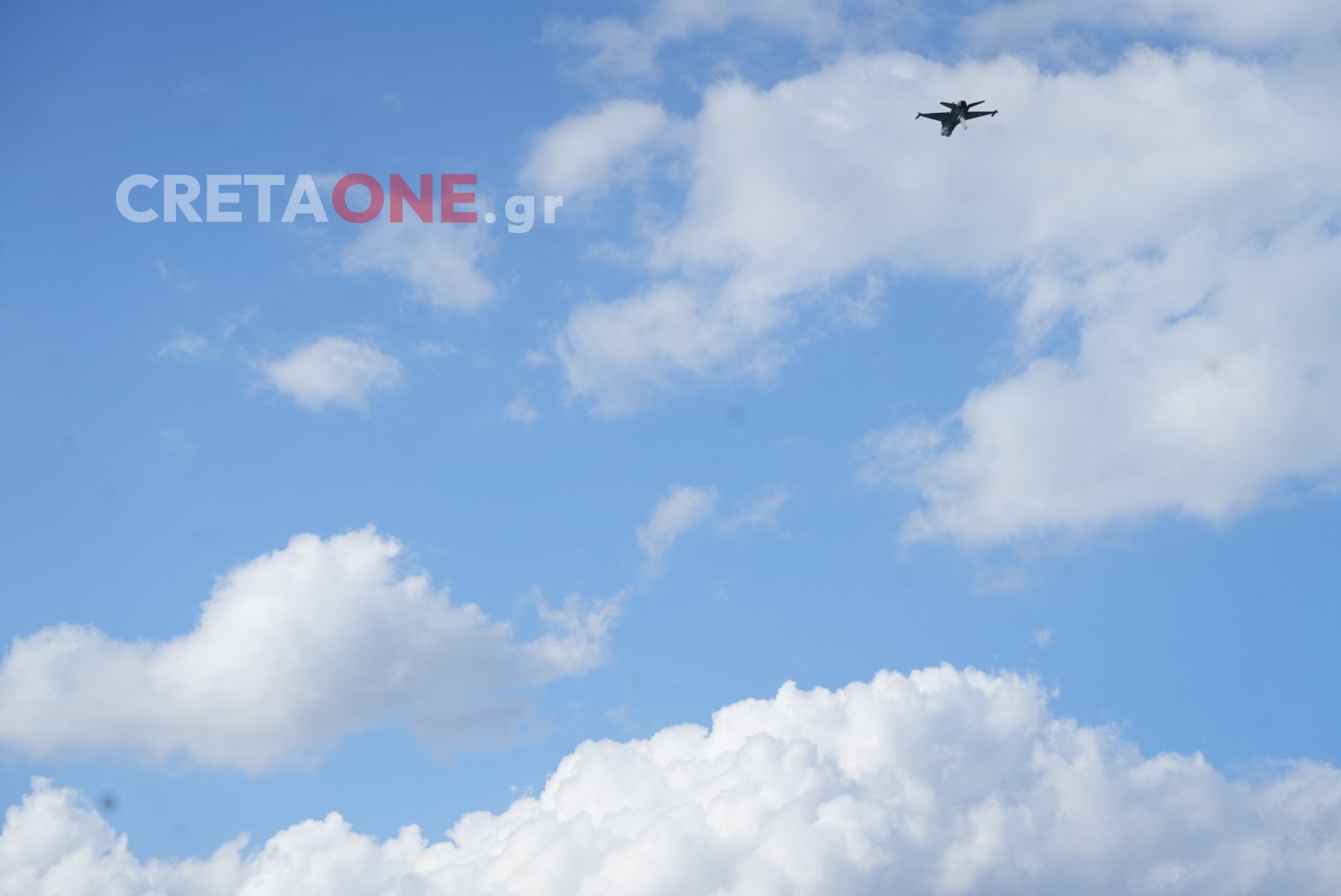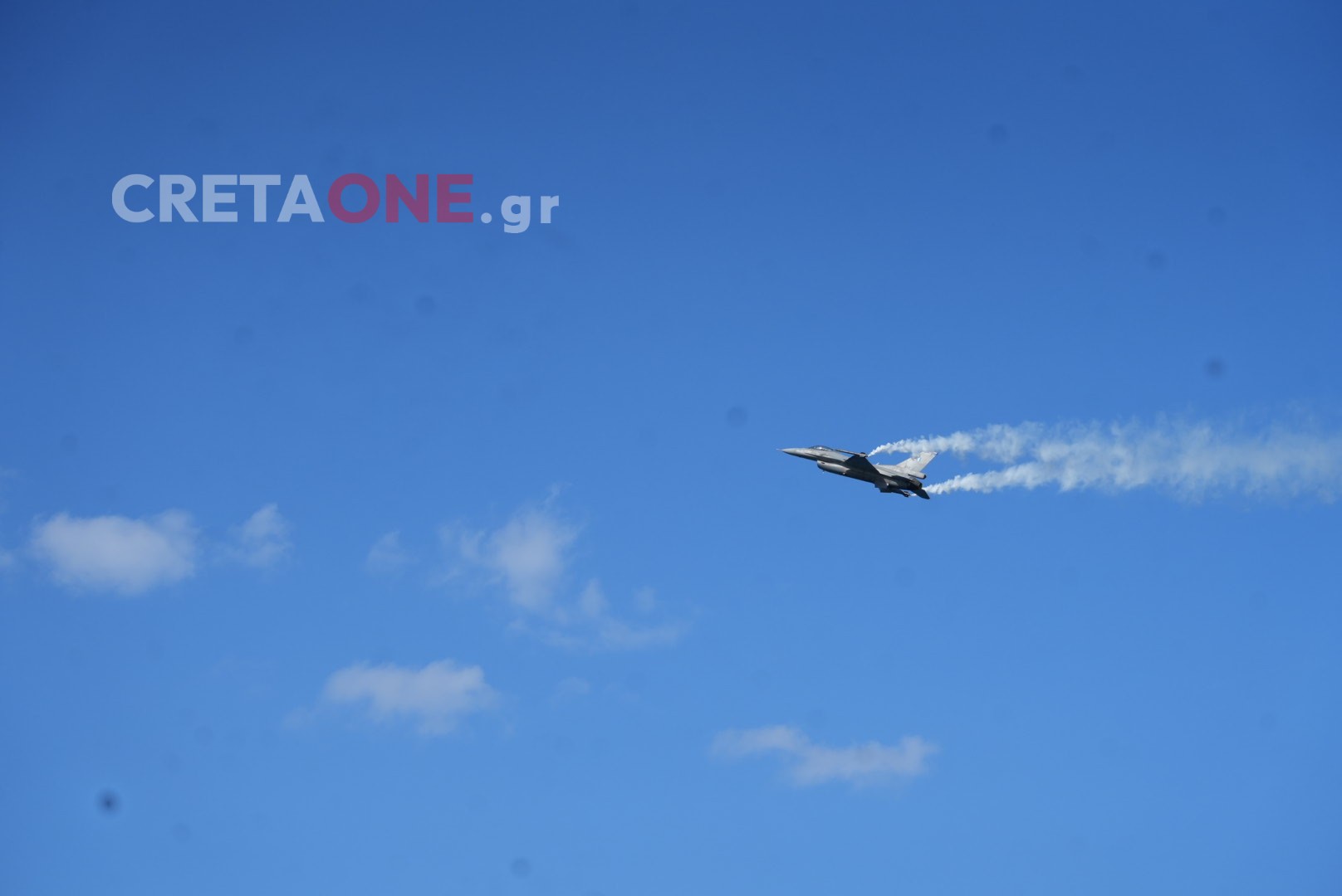 F-16 «έσκισαν» το μεσημέρι της Τρίτης (11/11) τον ηρακλειώτικο ουρανό, προσφέροντας ένα ανεπανάληπτο θέαμα στο πλαίσιο του εορτασμού του πολιούχου της πόλης, Αγίου Μηνά. Η ομάδα «ΖΕΥΣ» της Πολεμικής Αεροπορίας εντυπωσίασε το πλήθος που είχε συγκεντρωθεί στον Καράβολα και σε διάφορα σημεία του παραλιακού μετώπου, χαρίζοντας δυνατές στιγμές συγκίνησης και υπερηφάνειας.