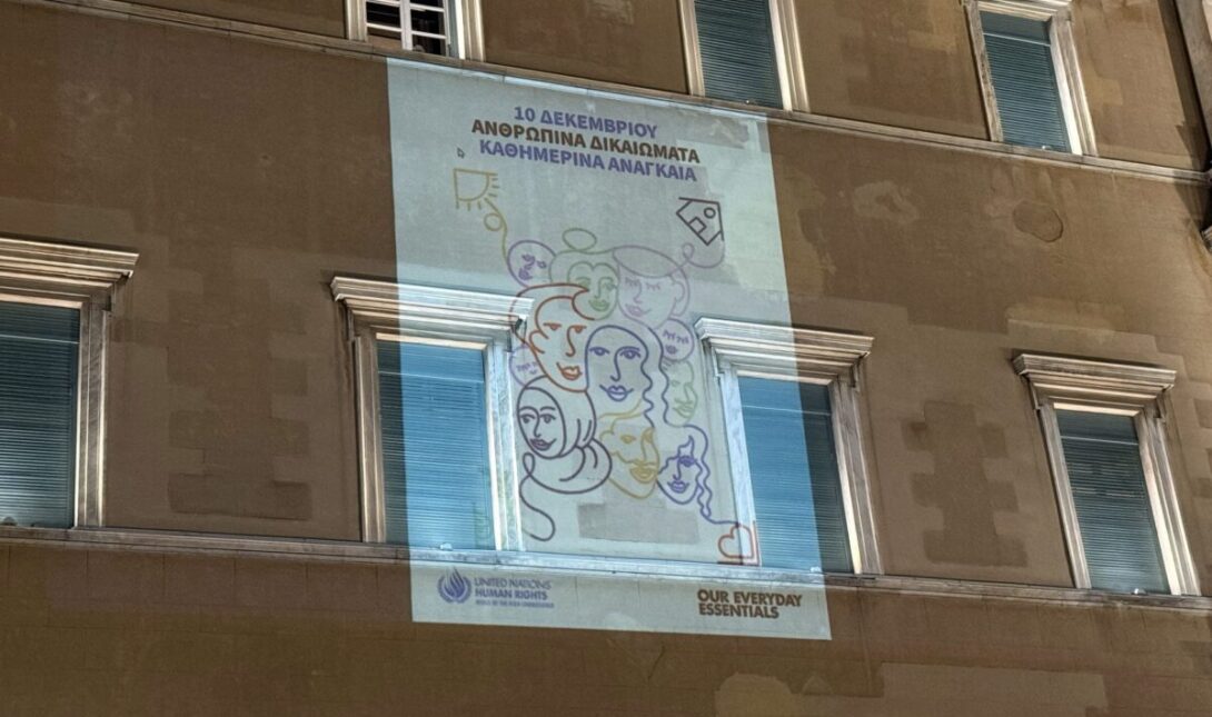 Με αφορμή την Παγκόσμια Ημέρα Ανθρωπίνων Δικαιωμάτων, η Βουλή των Ελλήνων, όπως αναφέρει σε ανακοίνωσή της, «ενώνει τη φωνή της με το Γραφείο του Ύπατου Αρμοστή των Ηνωμένων Εθνών για τα Ανθρώπινα Δικαιώματα (OHCHR) και φωταγώγησε σήμερα την πρόσοψή της με το εικαστικό της παγκόσμιας εκστρατείας».