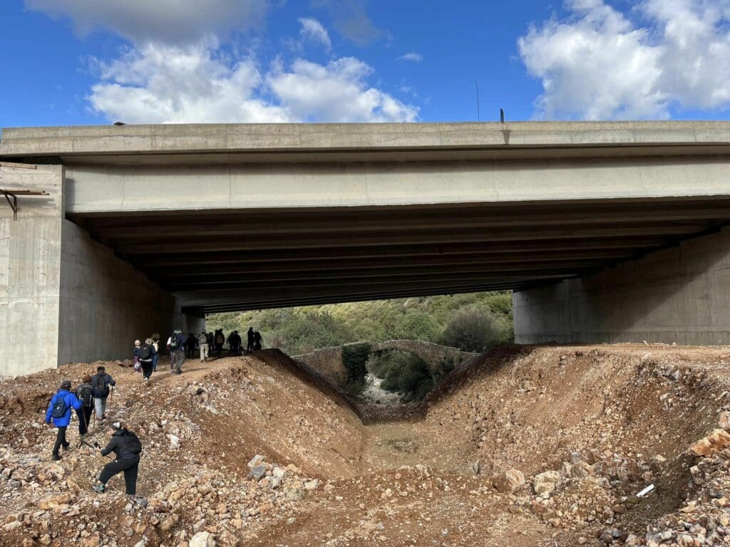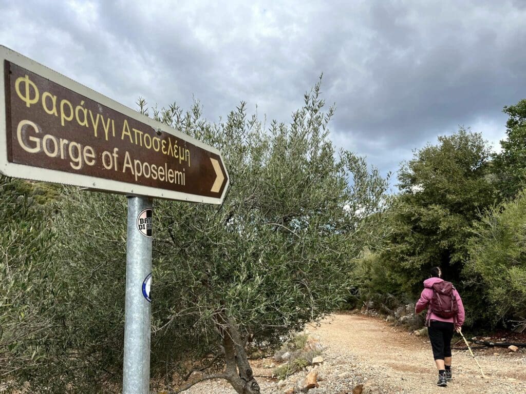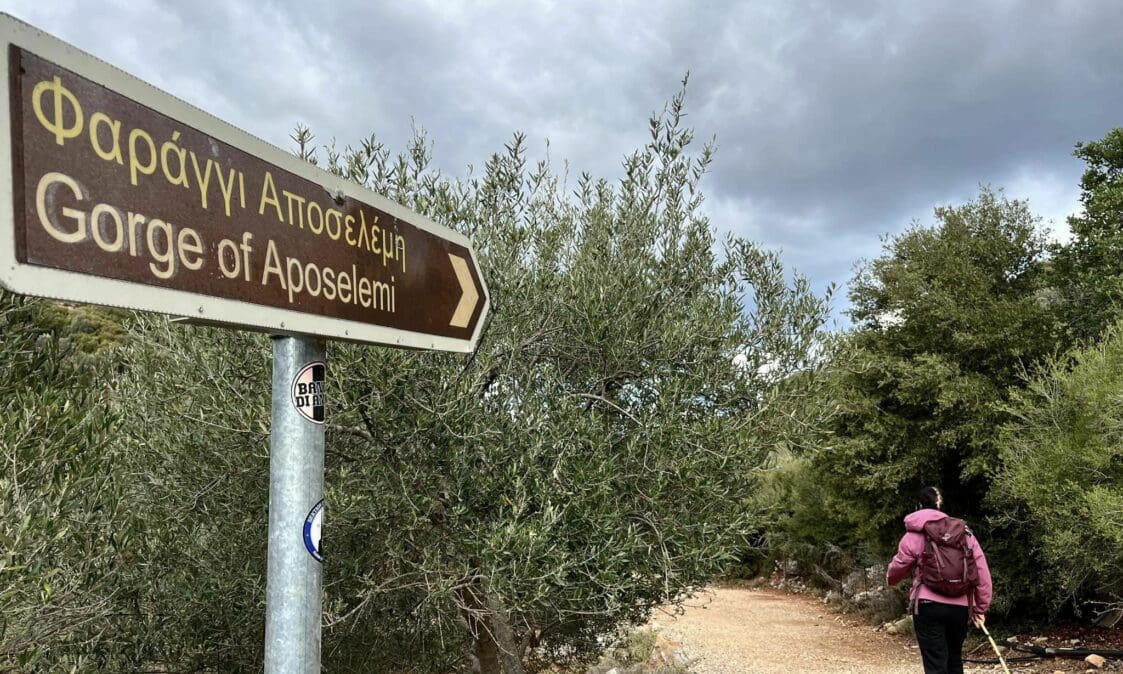 «Ξεκινάμε λοιπόν με το λεωφορείο του κυρ Γιώργη 8 η ώρα από τον Άγιο Νικόλαο μαζεύοντας καθ’ οδόν τους εκτός, με τελευταίο τον οδηγό κι αγαπημένο φίλο, τον Μαρίνο. Κοντά στη θέση Ξεροκαμάρα, στη νότια είσοδο του φαραγγιού του Αποσελέμη, ξεκινά η πεζοπορία μας με πολύ καλό καιρό. Θα περάσουμε αρχικά από τις δύο γέφυρες, την παλιά πετρόκτιστη, που την σκεπάζει χιαστί η σύγχρονη. Κουνάμε το κεφάλι, γιατί η σύγκριση είναι απογοητευτική: η αισθητική της παλιάς γεφυρούλας είναι καθηλωτική, όμως οι ανάγκες έχουν αλλάξει, δυστυχώς!