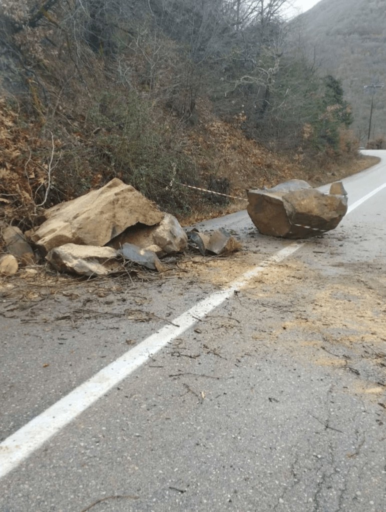 - Πραγματοποιήθηκαν εργασίες απομάκρυνσης των βράχων και καθαρισμού του οδοστρώματος.