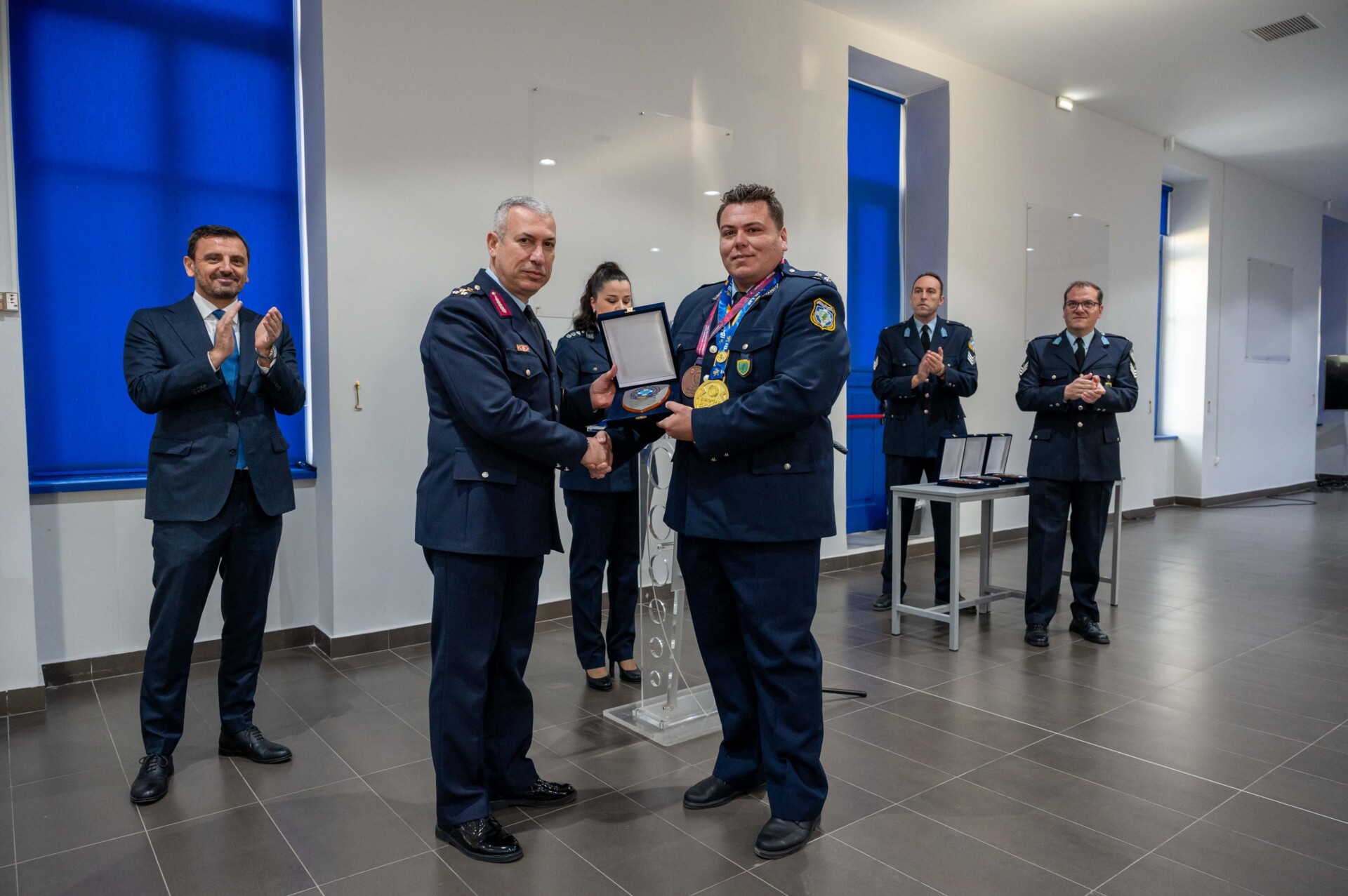 - Συνδυάζει τον πρωταθλητισμό με τις υποχρεώσεις του στην Ελληνική Αστυνομία, με τη στήριξη συναδέλφων και προϊσταμένων.