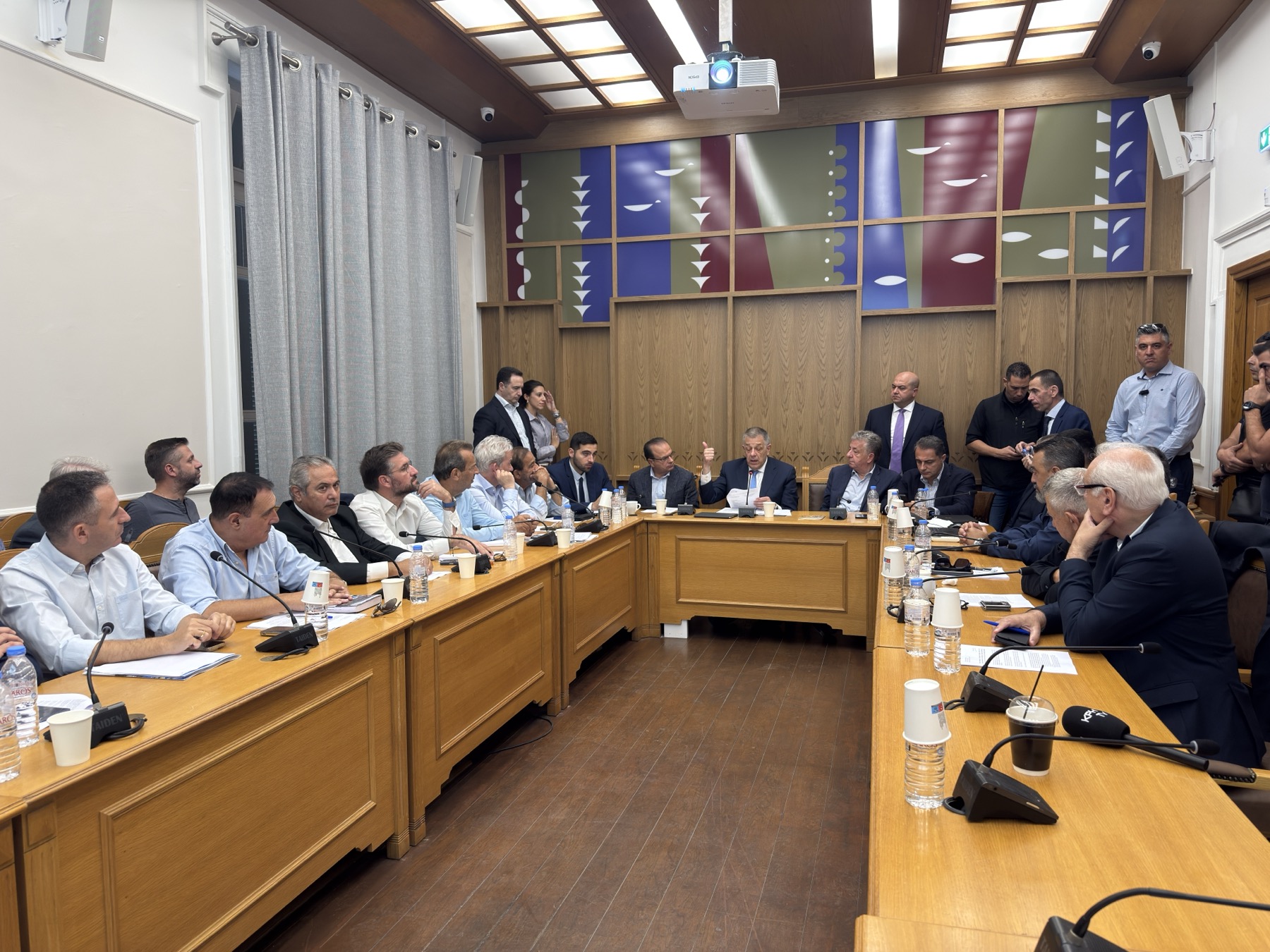 Στο πλαίσιο της διήμερης επίσκεψης του Υφυπουργού Υποδομών στην Κρήτη, Νίκου Ταχιάου είναι σε εξέλιξη ευρεία σύσκεψη με τη συμμετοχή του Περιφερειάρχη Κρήτης, Σταύρου Αρναουτάκη, και των Δημάρχων του νησιού. Κατά την εισαγωγική του τοποθέτηση, ο Περιφερειάρχης τόνισε τη σημασία της συνεργασίας και της κοινής προσπάθειας για την προώθηση των στρατηγικών έργων υποδομής που θα καθορίσουν το μέλλον της Κρήτης.