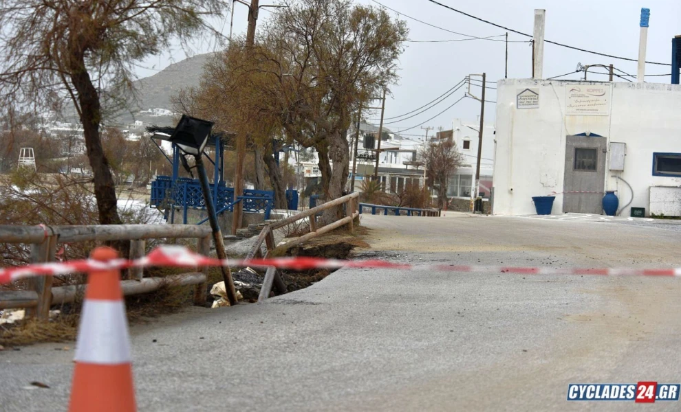 Όπως αναφέρει το cyclades24.gr, μέρος του οδοστρώματος υποχώρησε, με αποτέλεσμα ο Δήμος Νάξου να προχωρήσει άμεσα στο κλείσιμο της διέλευσης για λόγους ασφαλείας.