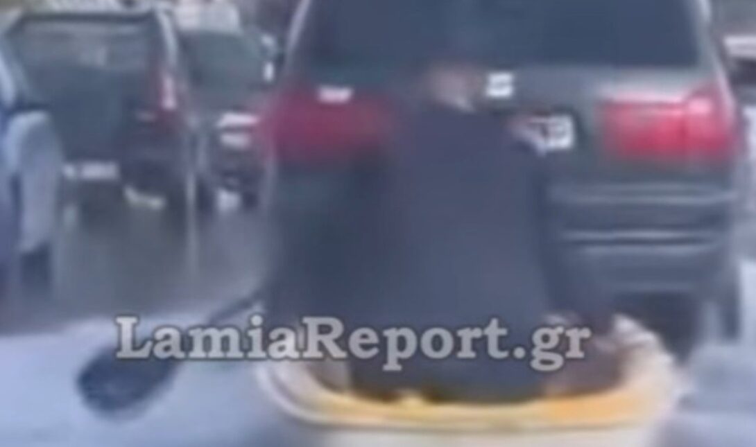 Με τον πλέον χιουμοριστικό τρόπο, νεαροί πήραν τη βάρκα και τα κουπιά και διέσχισαν τη «θάλασσα» του παραλιακού δρόμου.