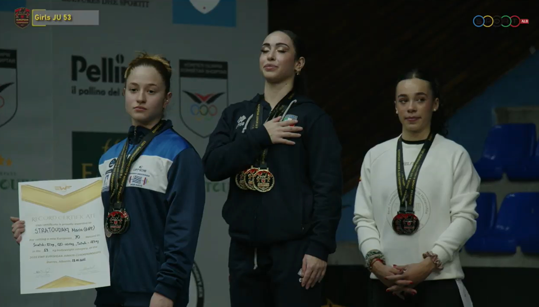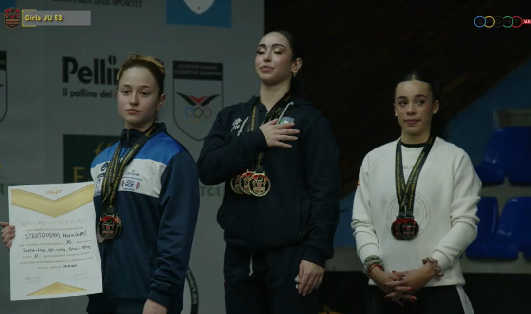 Νέα τρομερή εμφάνιση από την Μαρία Στρατουδάκη που κατέκτησε δύο ασημένια και ένα χάλκινο μετάλλιο στο Ευρωπαϊκό Πρωτάθλημα Νέων-Νεανίδων και U23 της Αλβανίας.