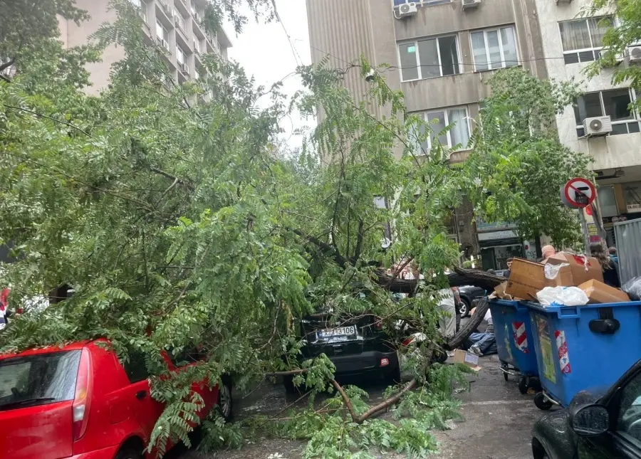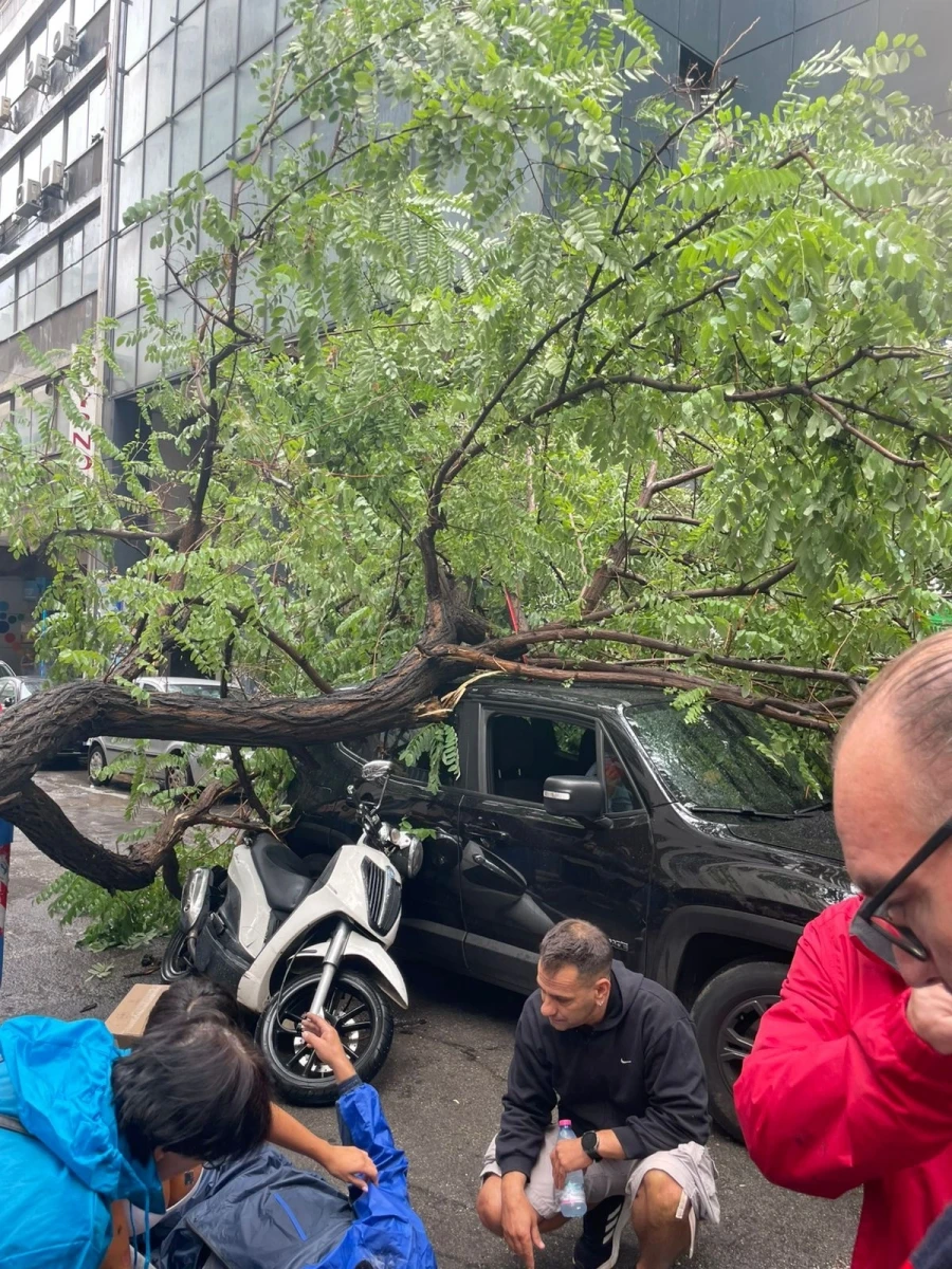 Ένα δέντρο ξεριζώθηκε εξαιτίας της νεροποντής στην Αθήνα, με αποτέλεσμα να τραυματιστεί περαστικός στην οδό Εμμανούλ Μπενάκη.