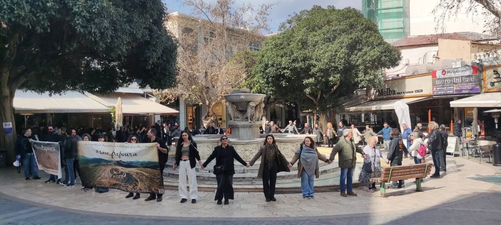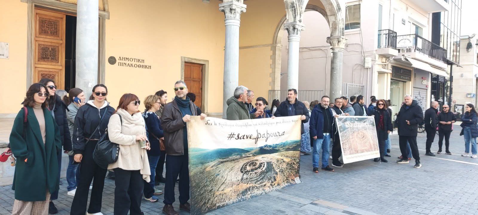 Αξίζει να σημειωθεί ότι παράλληλα με την «απόβαση» μπροστά στο Συμβούλιο Επικρατείας, είχαμε κινητοποιήσεις και εδώ στο Ηράκλειο. Οι εκδηλώσεις στήριξης στον αγώνα για τη διάσωση του σπουδαίου Μινωικού μνημείου στον λόφο Παπούρα έλαβαν χώρο τόσο στο μπροστά στο μέγαρο της Περιφέρειας Κρήτης, στην πλατεία Ελευθερίας, όσο και στην πλατεία των Λιονταριών όπου και σχηματίστηκε ένα κύκλος στο σχήμα του μνημείου, περιμετρικά των ενετικών λεόντων!