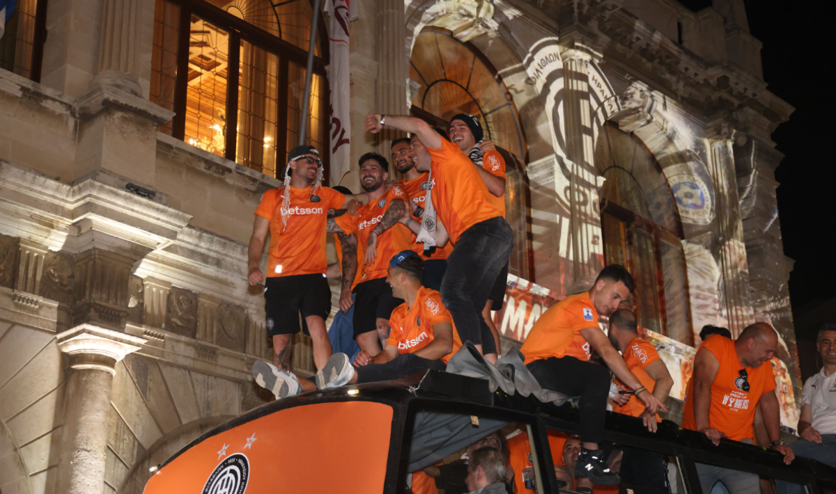 Ξεχωριστή στιγμή η ύψωση του τρόπαιου μέσα στην αίθουσα του Δημοτικού Συμβουλίου «Ελευθέριος Βενιζέλος» από τον Μιχάλη Μπούση και τον Αλέξη Καλοκαιρινό αλλά και οι εικόνες από τα παράθυρα του ιστορικού κτιρίου της Λότζια με το κύπελλο να σκορπά ρίγη συγκίνησης και τους φιλάθλους να αποθεώνουν παίκτες, προπονητή και διοίκηση.