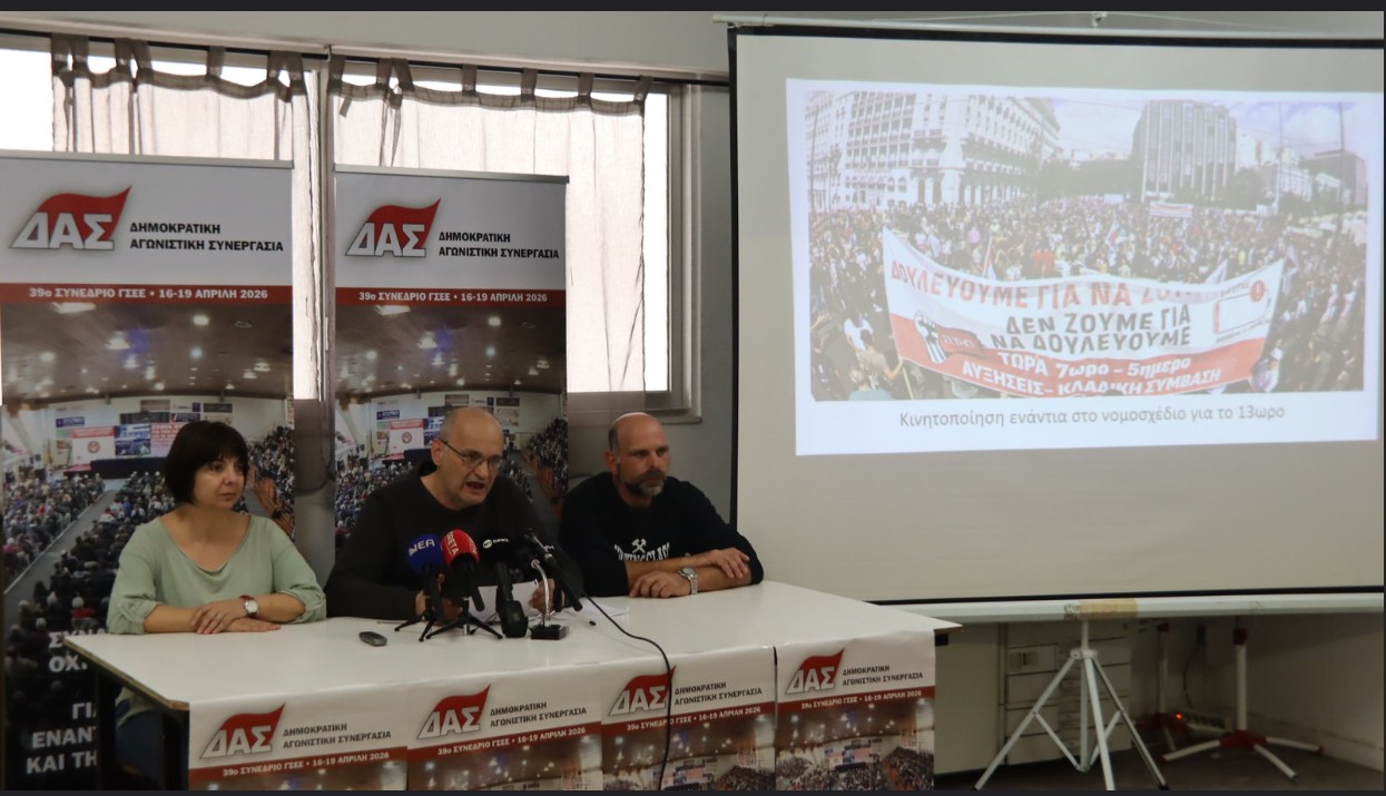 Το μήνυμα αυτό έστειλε μιλώντας στη συνέντευξη Τύπουτης ΔΑΣ (Δημοκρατικής Αγωνιστικής Συνεργασίας) με φόντο το συνέδριο τηςΓΣΕΕεδώ στο Ηράκλειο ο Γιάννης Τασιούλας, πρόεδρος της Ομοσπονδίας Οικοδόμων Ελλάδας, δίνοντας εξαρχής το στίγμα και τον προσανατολισμό των θέσεων του, που όπως είπε «πιστεύουμε ότι δίνουν διέξοδο στους προβληματισμούς των εργαζομένων».