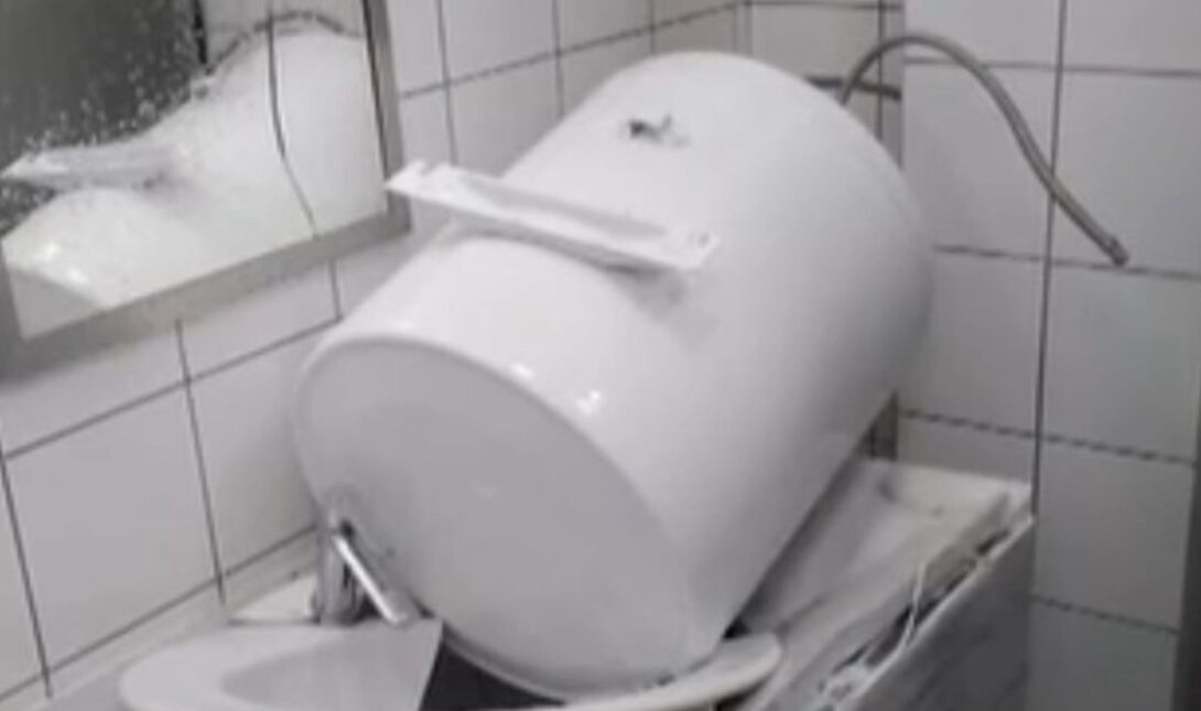 Το σοβαρό συμβάν έγινε στο 3ο δημοτικό σχολείου της περιοχής με την εικόνα του θερμοσίφωνα να είναι σοκαριστική, καθώς θα μπορούσε να πέσει πάνω σε κάποιο μαθητή με τις συνέπειες να είναι σημαντικές.