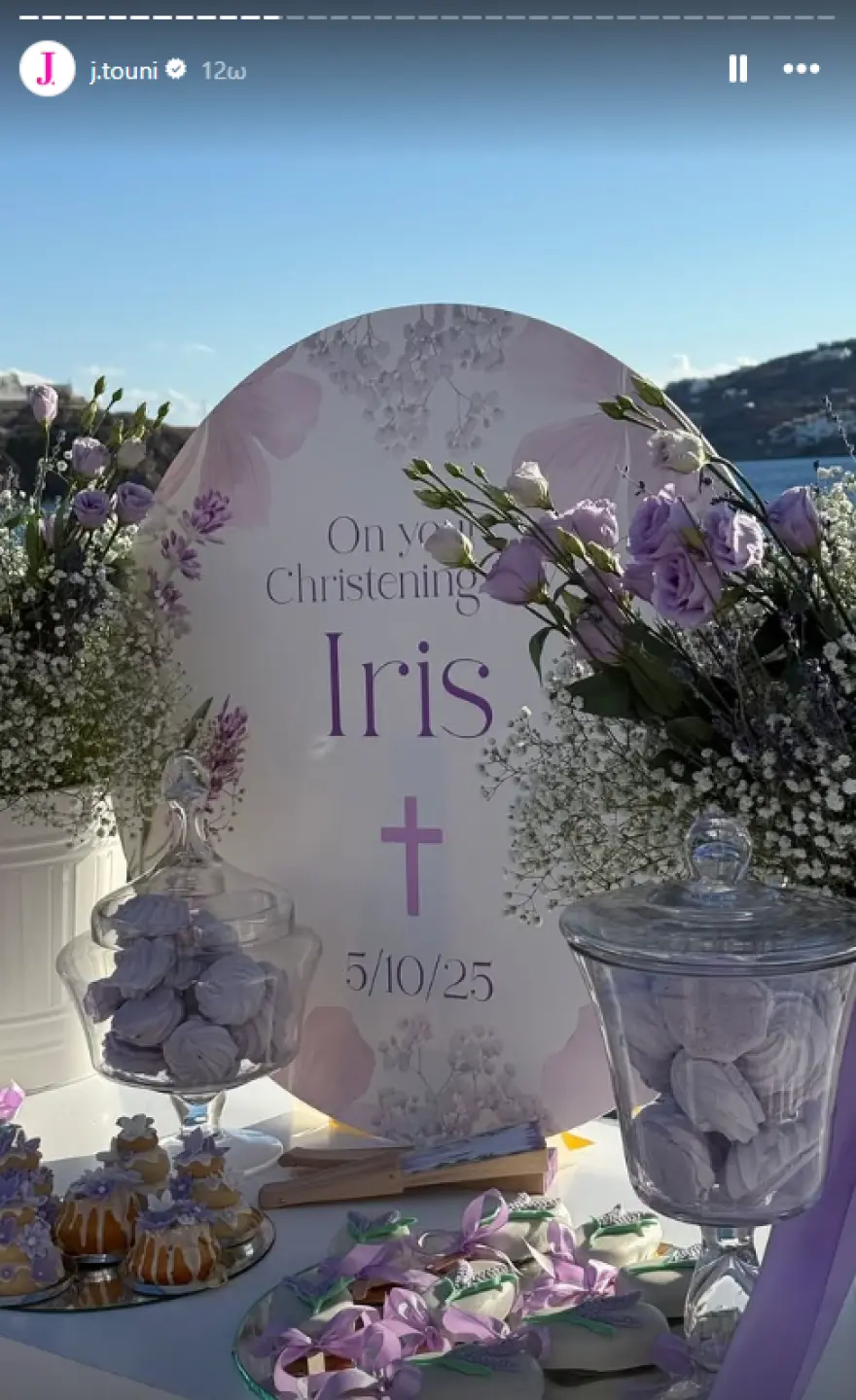 - Η βάφτιση της μικρής Ίρις πραγματοποιήθηκε σε γραφικό εκκλησάκι με θέα στη θάλασσα.