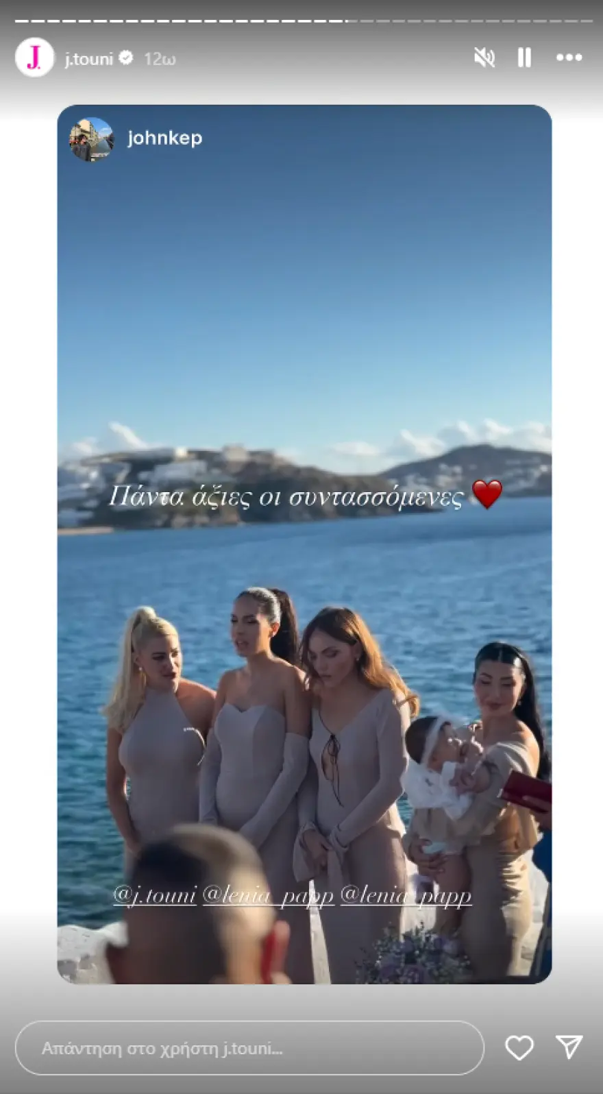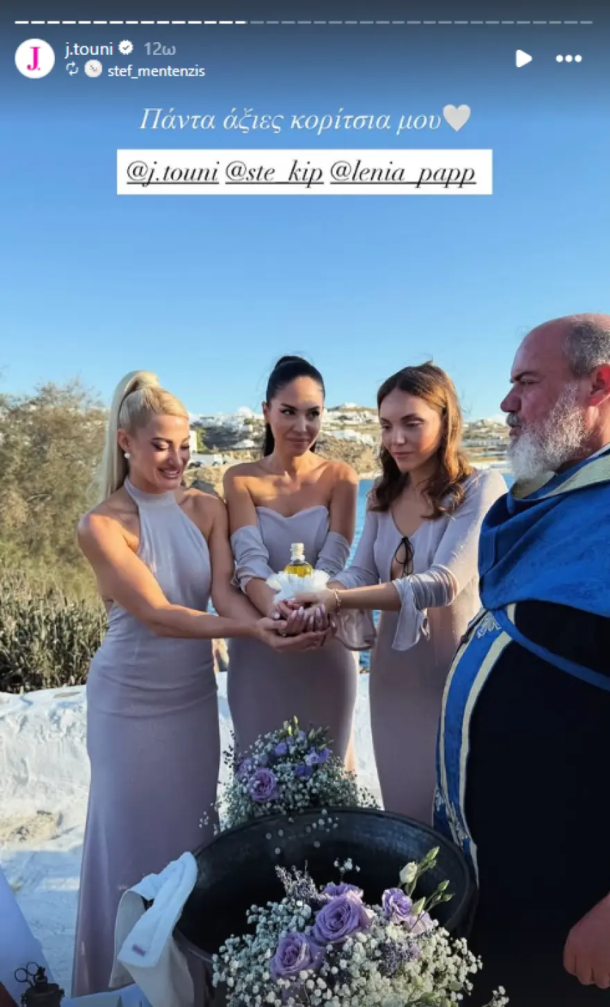 - Βίντεο και φωτογραφίες της τελετής αναρτήθηκαν στο Instagram, με την Τούνη να αναδημοσιεύει υλικό στον λογαριασμό της.