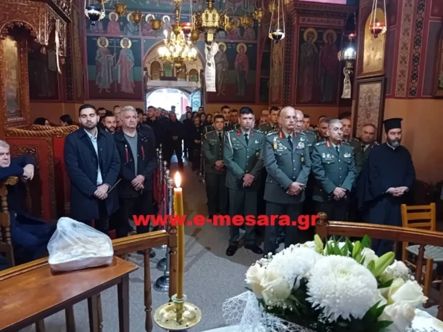 Συγγενείς, φίλοι και εκπρόσωποι της πολιτικής και στρατιωτικής ηγεσίας έδωσαν το «παρών» στο μνημόσυνο του 19χρονου από το Τυμπάκι, που έχασε τη ζωή του κατά τη διάρκεια στρατιωτικής άσκησης, ύστερα από έκρηξη χειροβομβίδας.