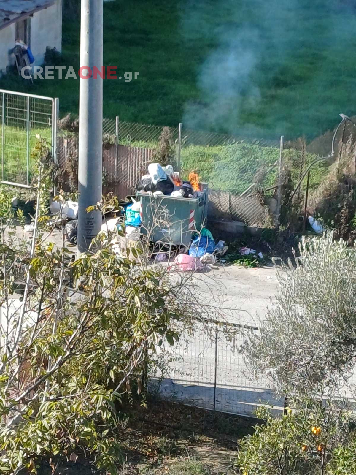 Αναστάτωση προκλήθηκε το πρωί των Χριστουγέννων σε γειτονιά στον Αϊ Γιάννη Κνωσού, όταν από άγνωστο λόγο, κάδος απορριμμάτων άρπαξε φωτιά.