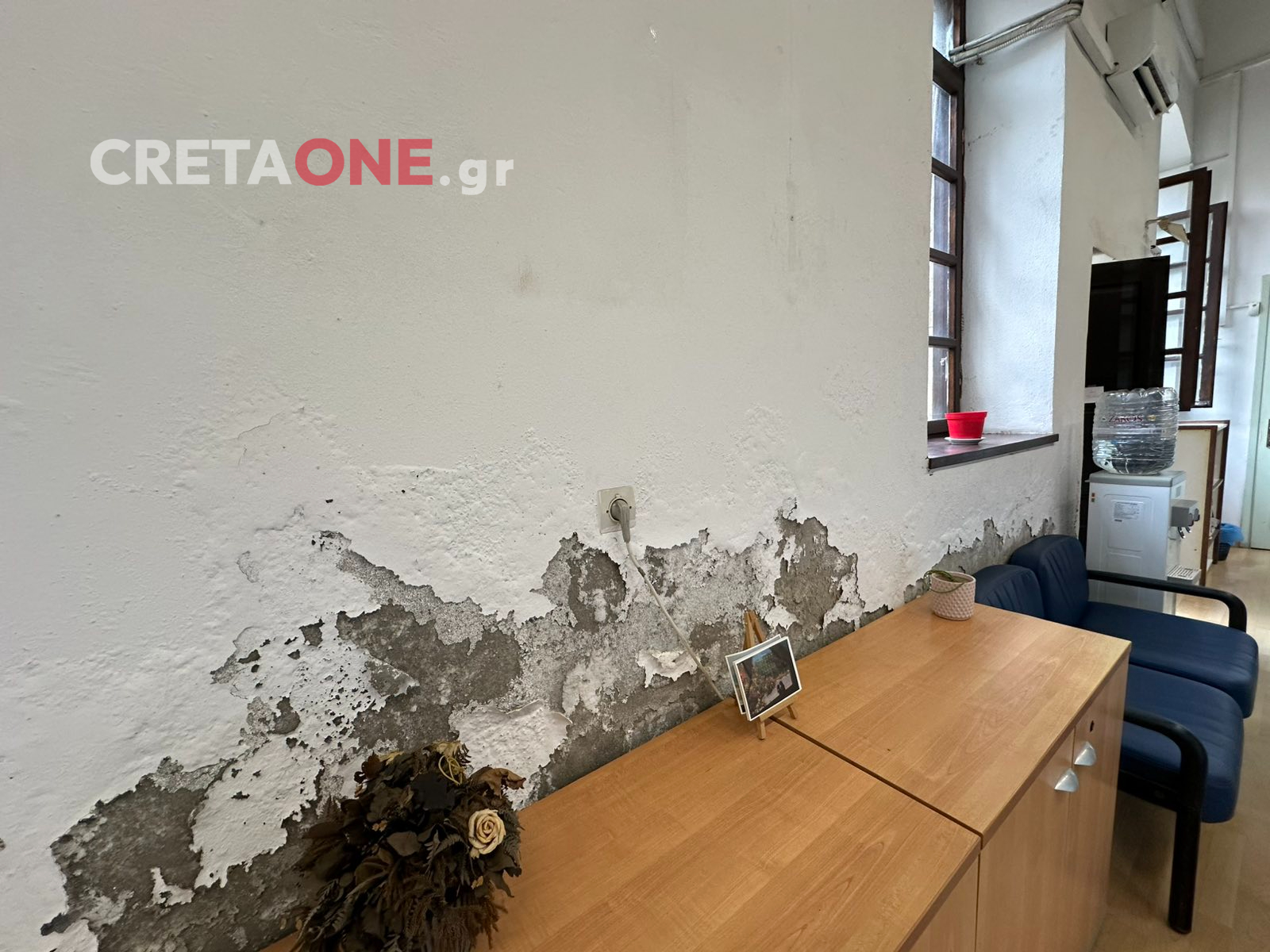 Η κατάσταση επιβαρύνεται ακόμα περισσότερο, καθώς στους τοίχους και στο δάπεδο του κτιρίου, όπου στεγάζεται τμήμα της Διεύθυνσης υδάτων της Αποκεντρωμένης, τρέχουν νερά με αποτέλεσμα να δημιουργούνται προβλήματα και οι υπάλληλοι να ζητούν να εργαστούν εξ αποστάσεως.