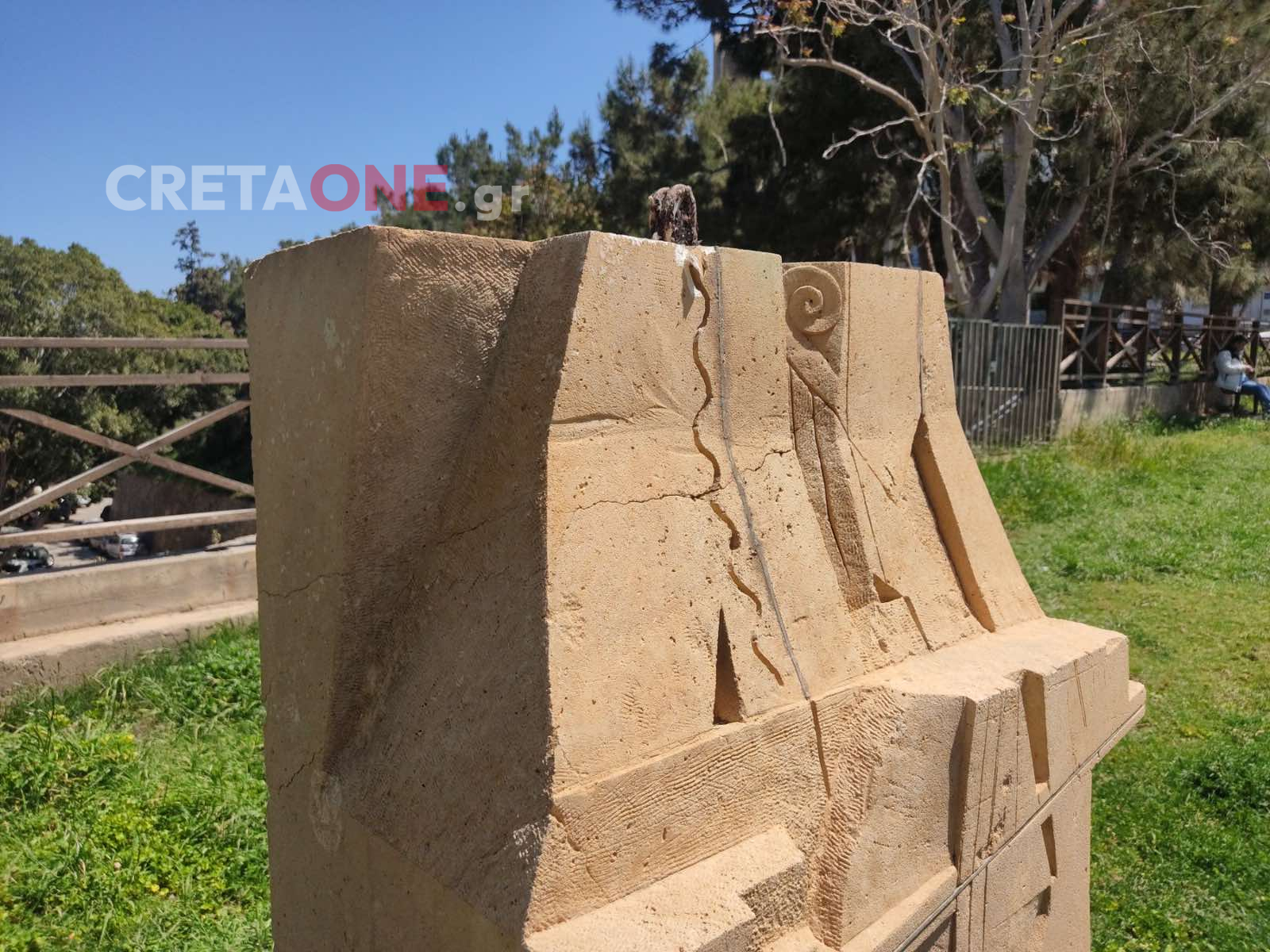 - Το γλυπτό έχει τεθεί υπό ασφαλή φύλαξη μέχρι να αποκατασταθεί η ζημιά.