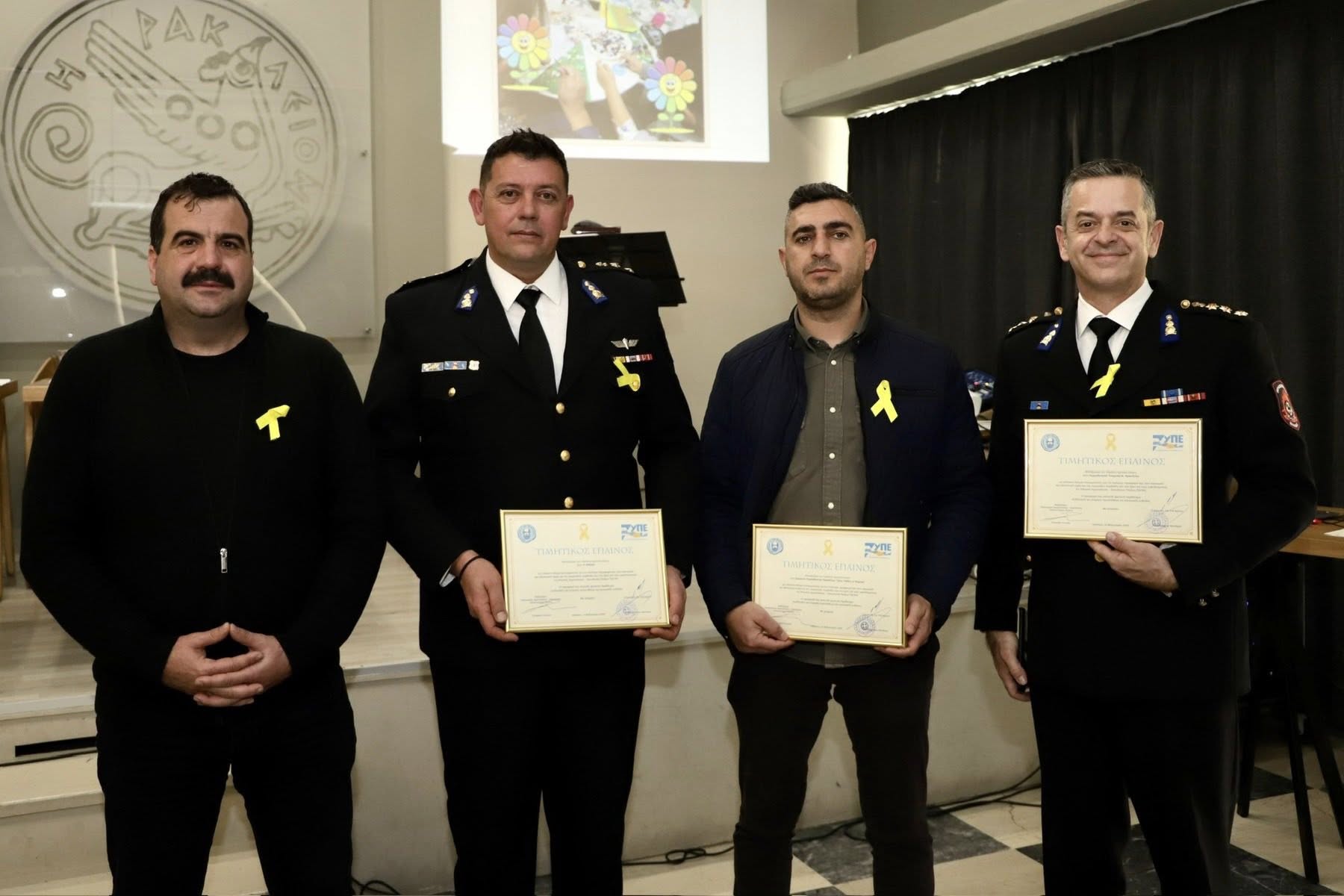 Ιδιαίτερη στιγμή αποτέλεσε η βράβευση του Σωματείου Πυροσβεστών Ηρακλείου «Τρεις Παιδές εν Καμίνω», για τη στήριξή τους στο έργο της Κλινικής Αιματολογίας – Ογκολογίας Παίδων του ΠΑΓΝΗ και στις οικογένειες που δίνουν τη μάχη με τον καρκίνο. Οι πυροσβέστες τόνισαν μέσα από ανάρτηση που έκαναν στο facebook, ότι η αναγνώριση αποτελεί δέσμευση να συνεχίσουν να στηρίζουν την κοινωνία με πράξεις, σεβασμό και συνέπεια.