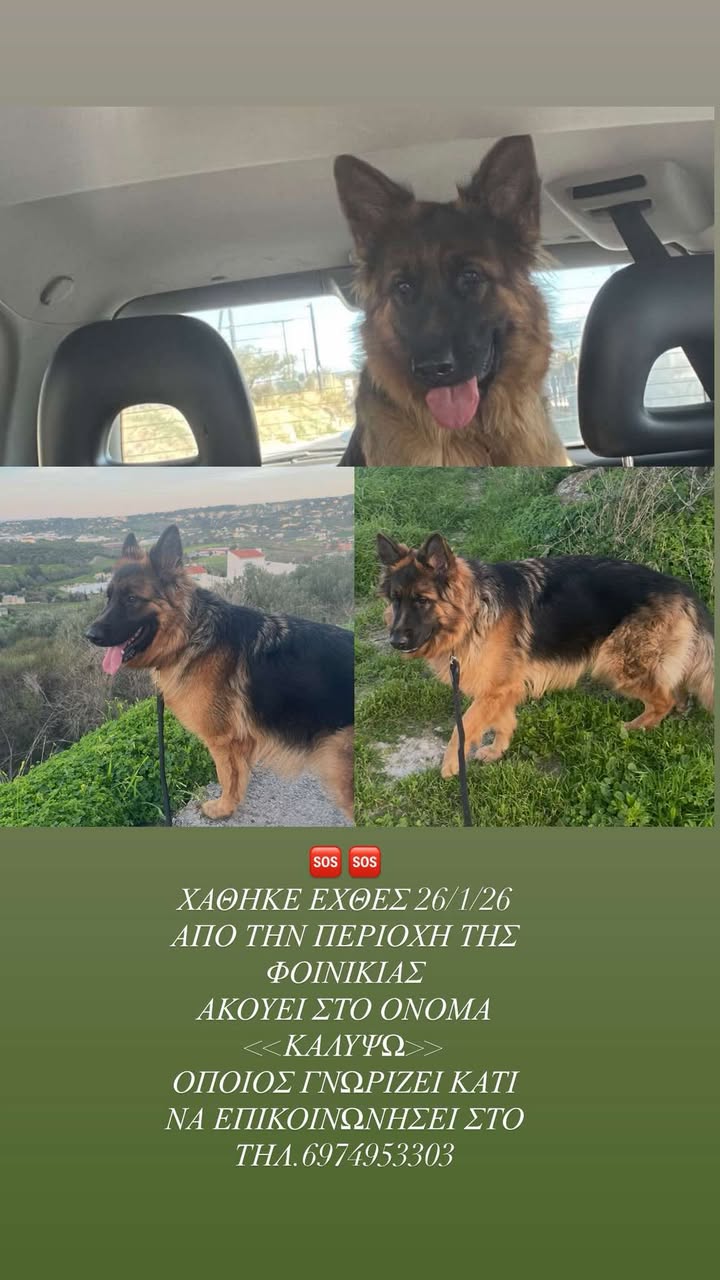 Μια σκυλίτσα, που ακούει στο όνομα «Καλυψώ», έχει χαθεί από την περιοχή της Φοινικιάς Ηρακλείου από τις 26 Ιανουαρίου 2026, με την ιδιοκτήτριά της να απευθύνει έκκληση σε όποιον γνωρίζει κάτι να βοηθήσει στον εντοπισμό της.