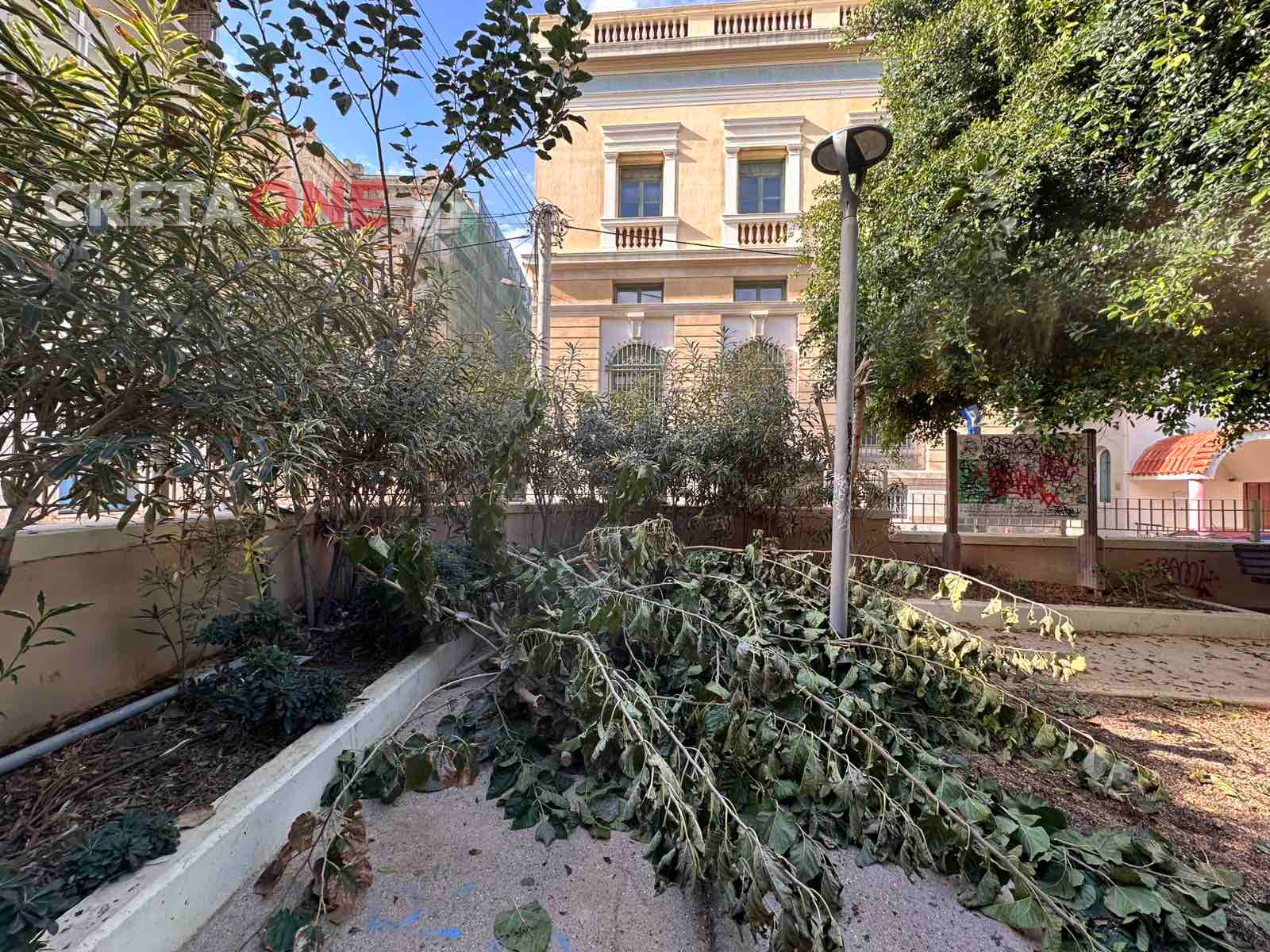 Αναστάτωση προκλήθηκε στο κέντρο του Ηρακλείου, και συγκεκριμένα στην πλατεία Θειακάκη, όταν ένα δέντρο κατέρρευσε μέσα στο πάρκο.