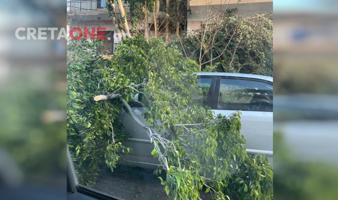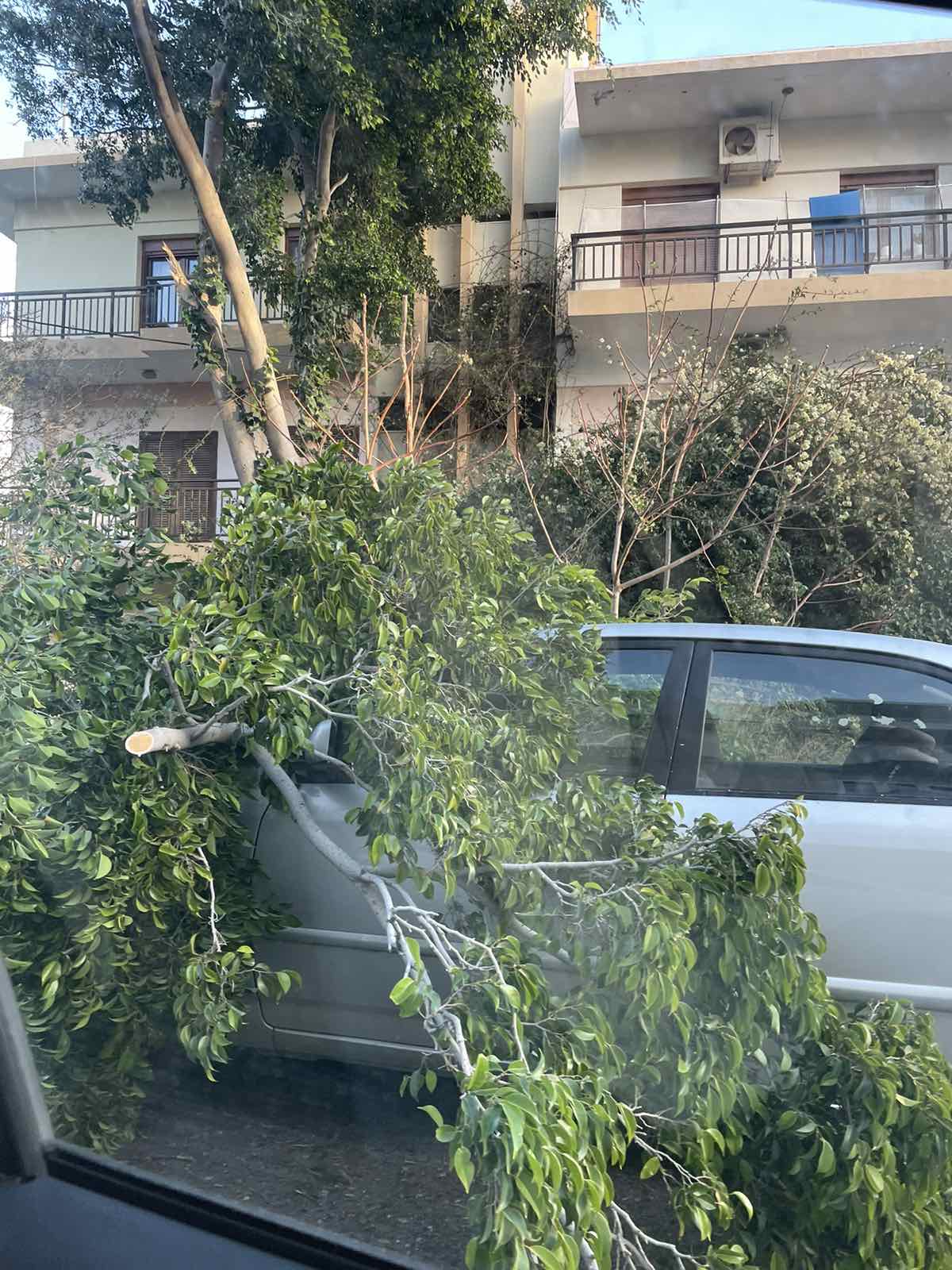 Οι θυελλώδεις άνεμοι που επικράτησαν από τα ξημερώματα, σε συνδυασμό με την έντονη βροχόπτωση και τη χαλαζόπτωση, είχαν ως αποτέλεσμα να σπάσει μεγάλο κλαδί δέντρου, το οποίο έπεσε πάνω σε Ι.Χ. όχημα που ήταν σταθμευμένο στον δρόμο.