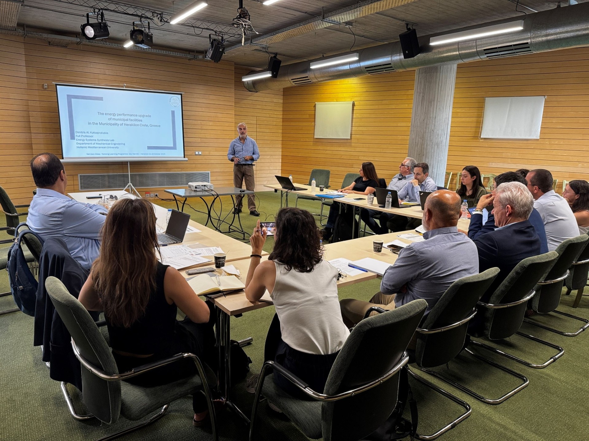 Ομιλία του Δρ. Δημήτρη Κατσαπρακάκη Μηχανολόγου Μηχανικού καθηγητή του τμήματος Μηχανολόγων Μηχανικών της Πολυτεχνικής Σχολής του ΕΛ.ΜΕ.ΠΑ ο οποίος παρουσίασε τις μελέτες για την ενεργειακή αναβάθμιση του κτηρίου της Loggia και του Παγκρητίου Σταδίου.