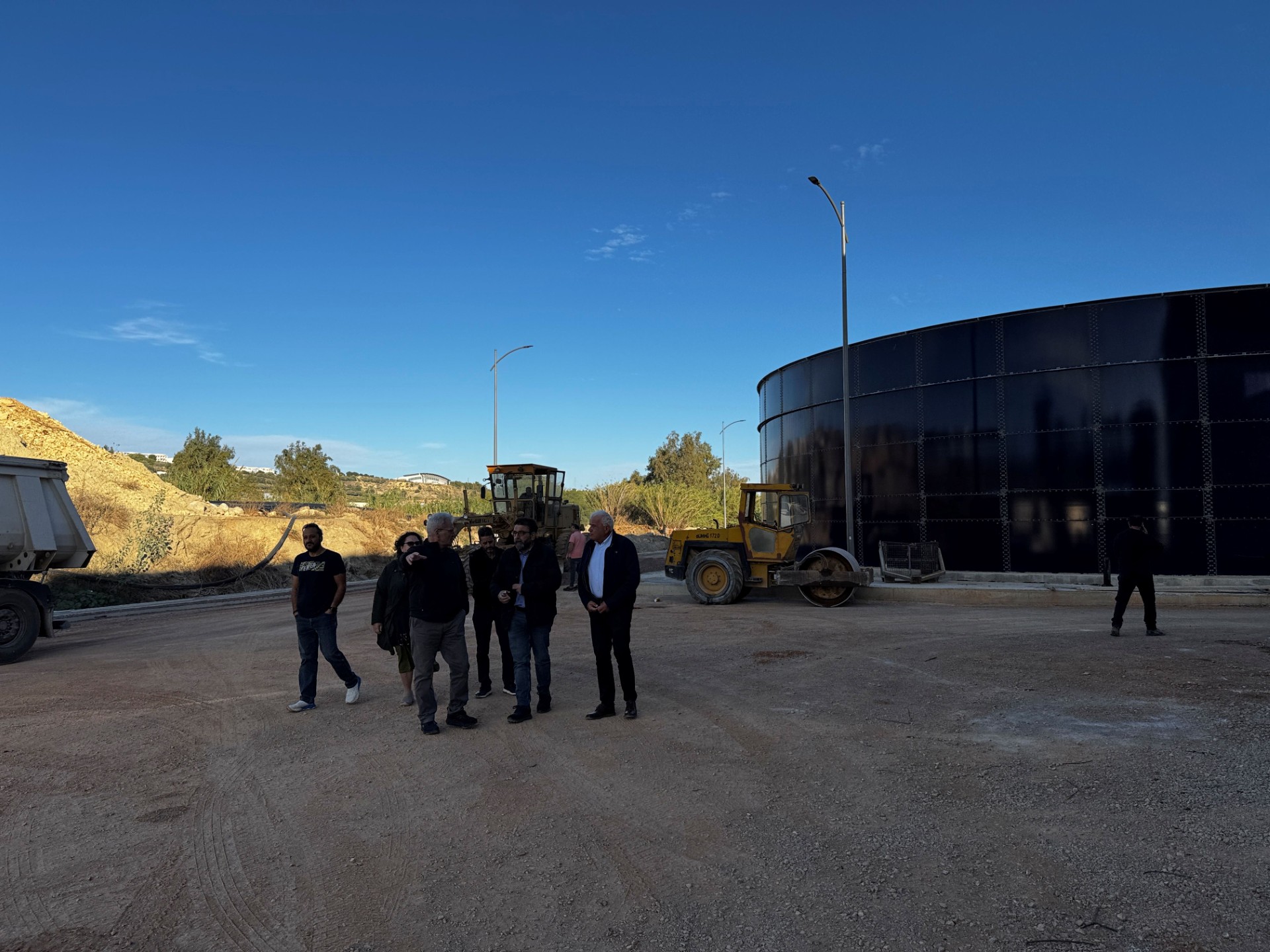Αυτοψία στο έργο κατασκευής της νέας μονάδας Τριτοβάθμιας Επεξεργασίας στις Εγκαταστάσεις Επεξεργασίας Αστικών Λυμάτων Ηρακλείου και εγκατάστασης δικτύων για την αξιοποίηση της εκροής για άρδευση, πραγματοποίησε νωρίς το πρωί της Τρίτης 25/11 ο Δήμαρχος Ηρακλείου Αλέξης Καλοκαιρινός, μαζί με τον Πρόεδρο της ΔΕΥΑΗ Γιώργο Βουρεξάκη, τον Αντιπρόεδρο Βασίλη Παρασύρη, τον Γενικό Διευθυντή Μανόλη Κοσμαδάκη και την Τεχνική Διευθύντρια Πόπη Τσαβλάκη.