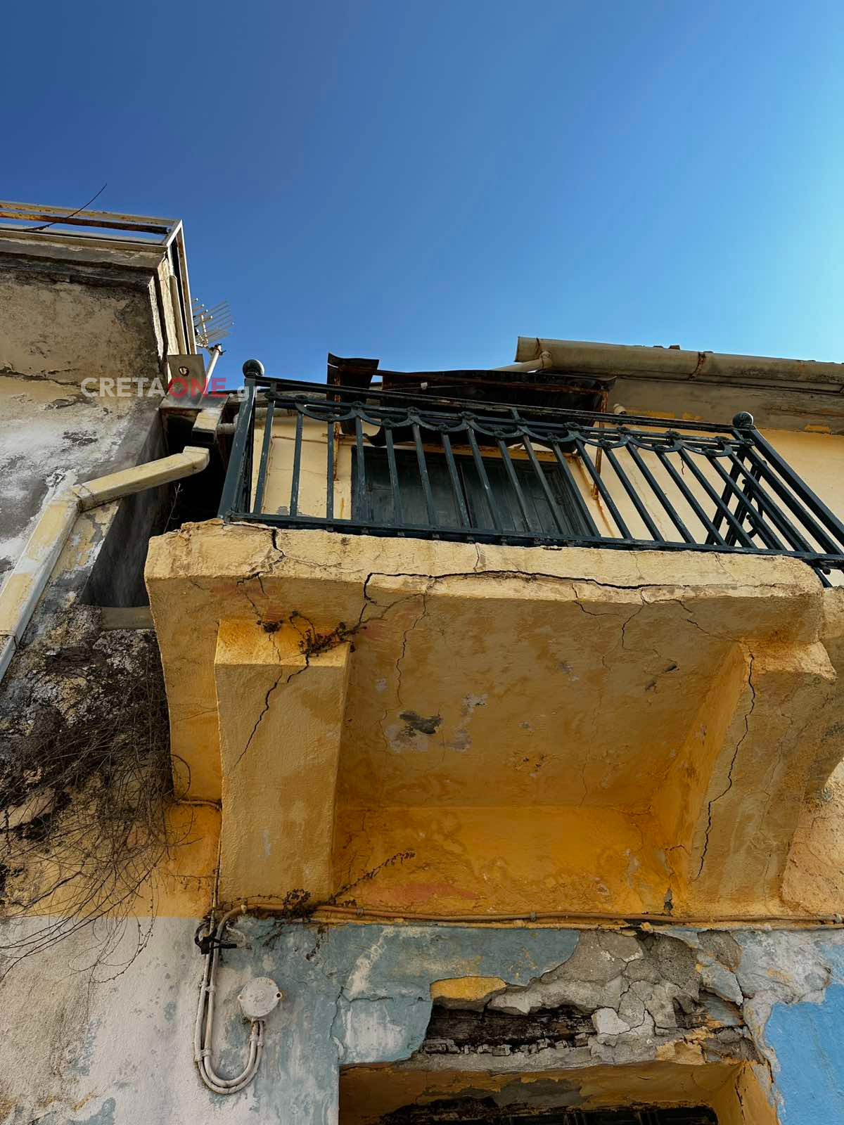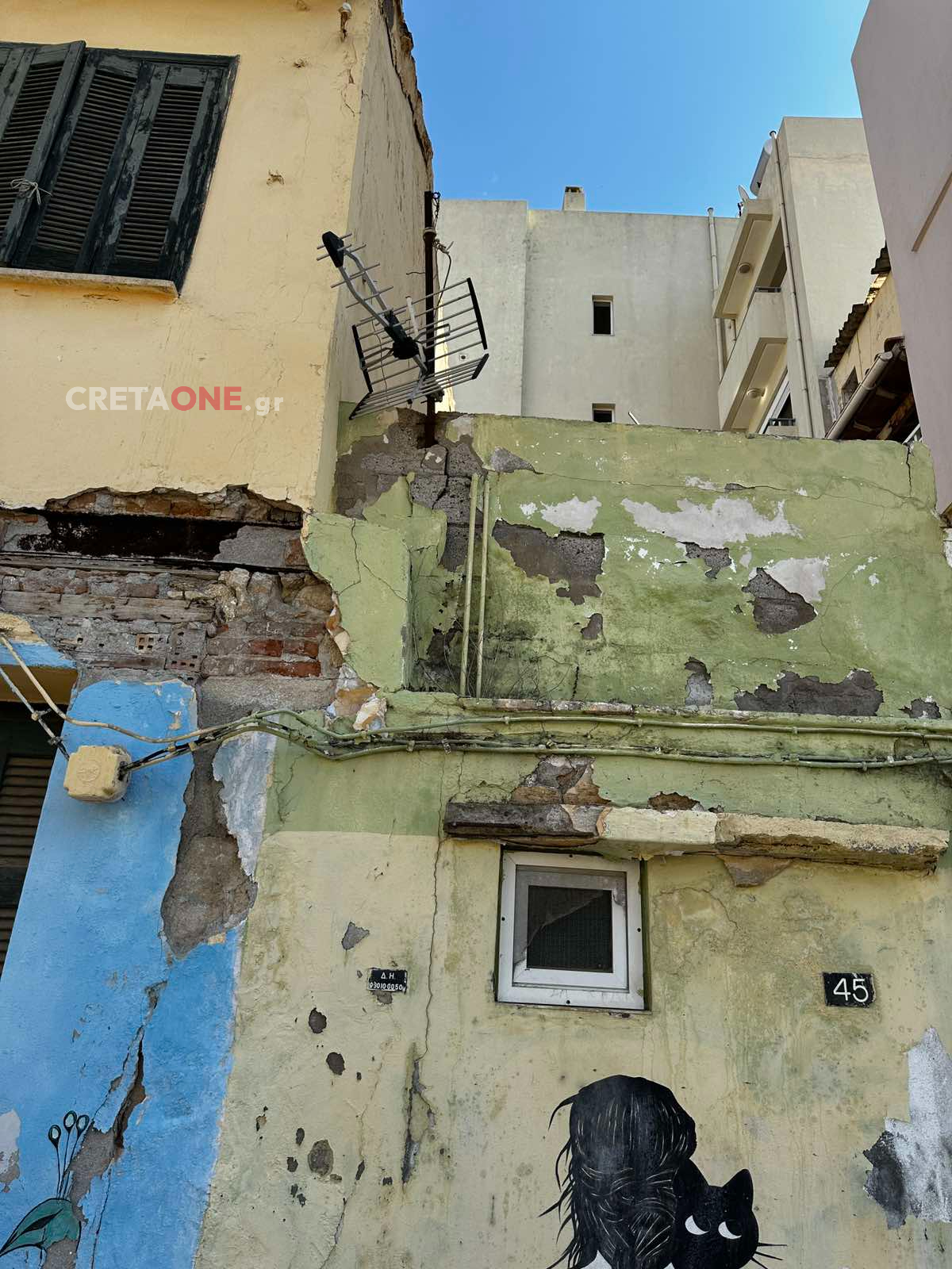 Σε αρκετά σημεία, οι ρωγμές είναι φανερές και κομμάτια σοβά έχουν αποκολληθεί και έχουν πέσει στο πεζοδρόμιο.